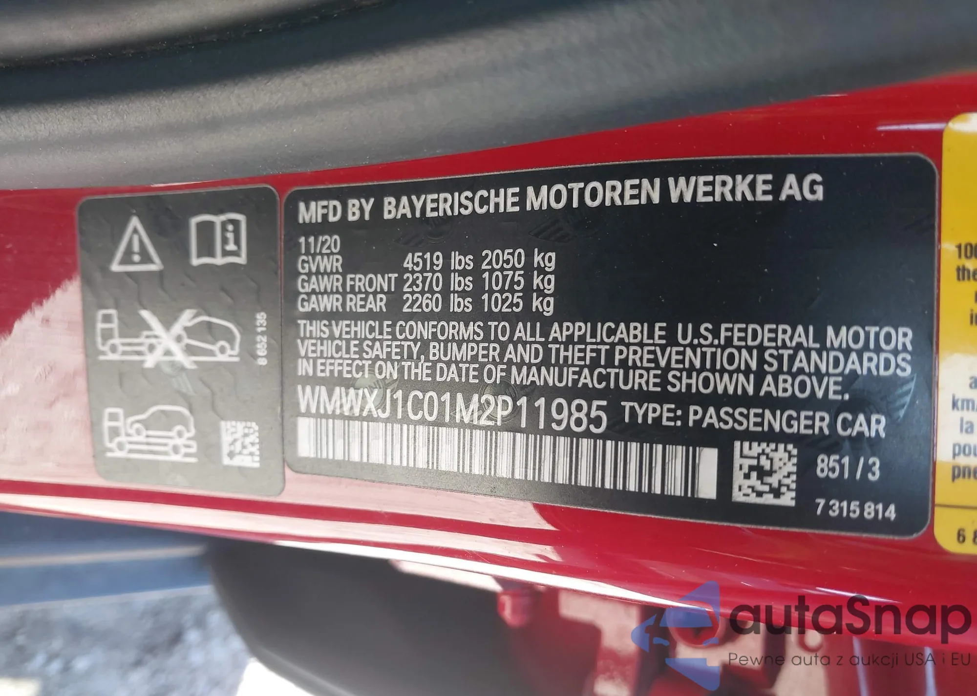 • VIN WMWXJ1C01M2P11985