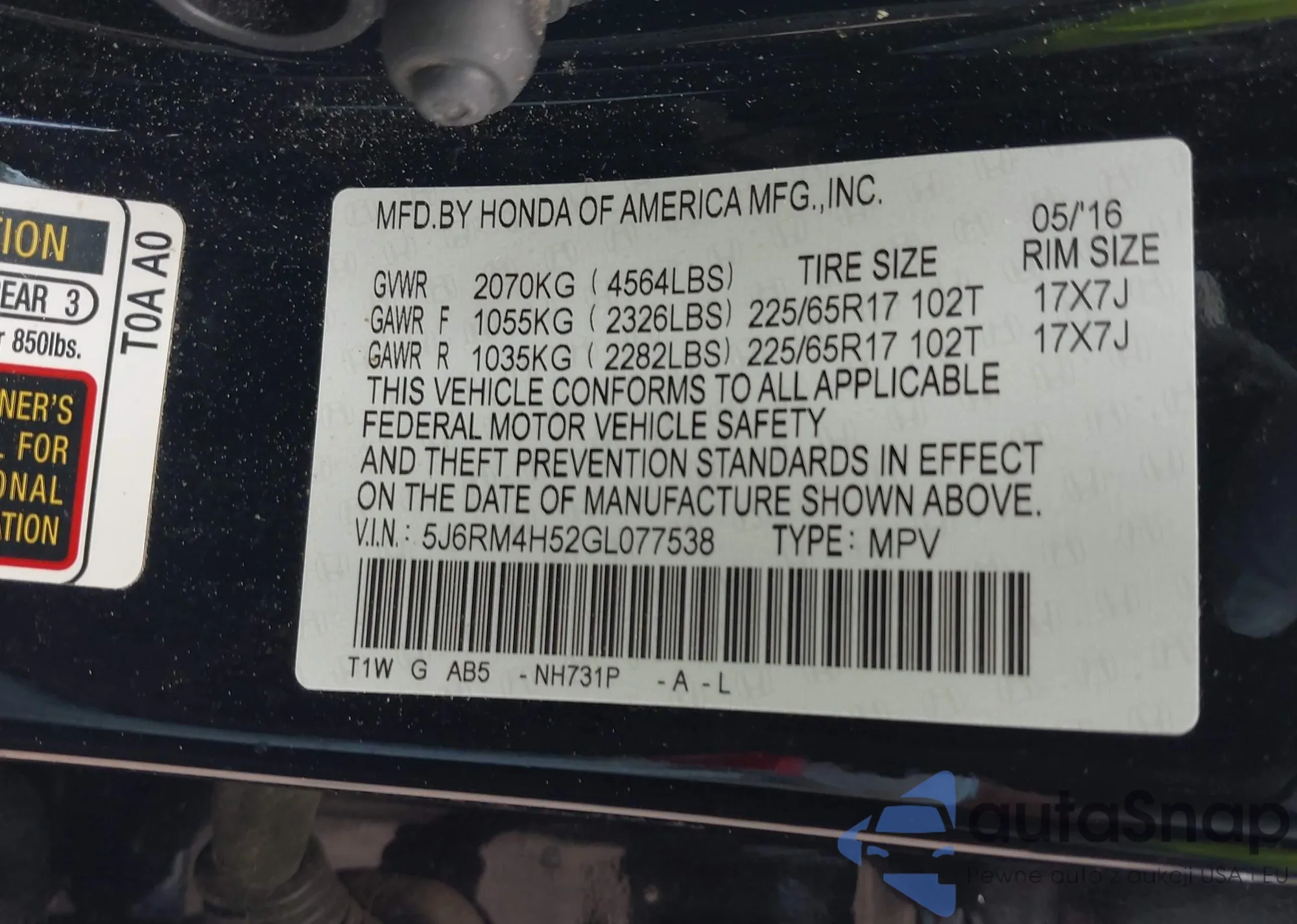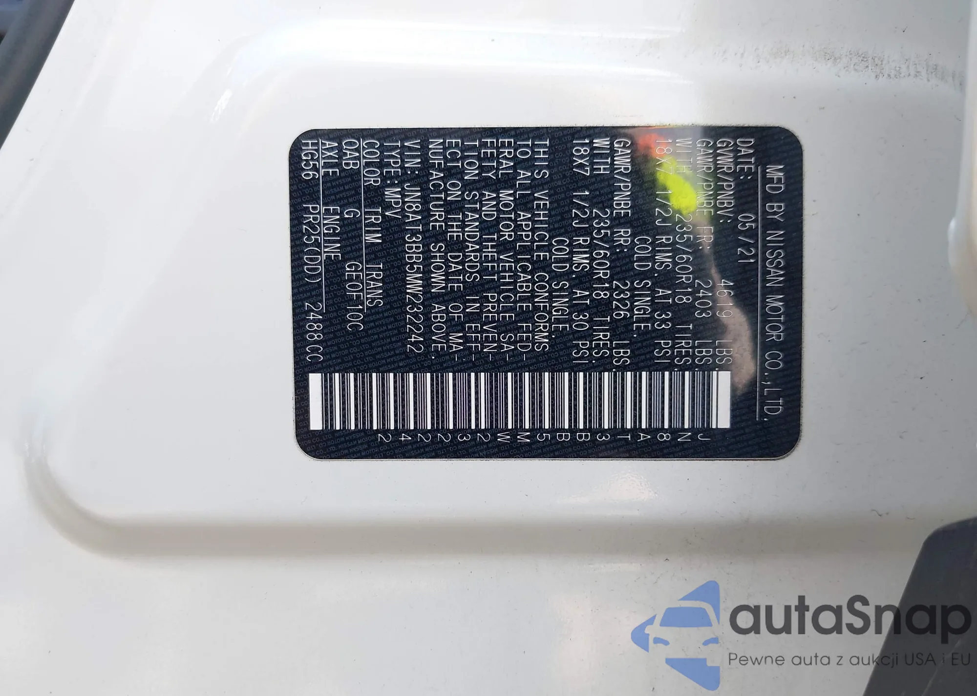 • VIN JN8AT3BB5MW232242