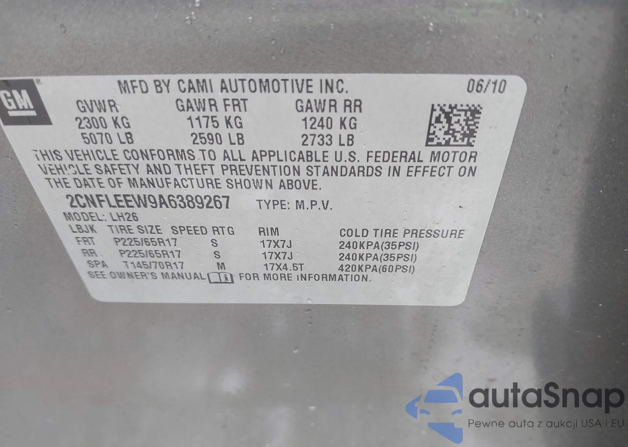 • VIN 2CNFLEEW9A6389267