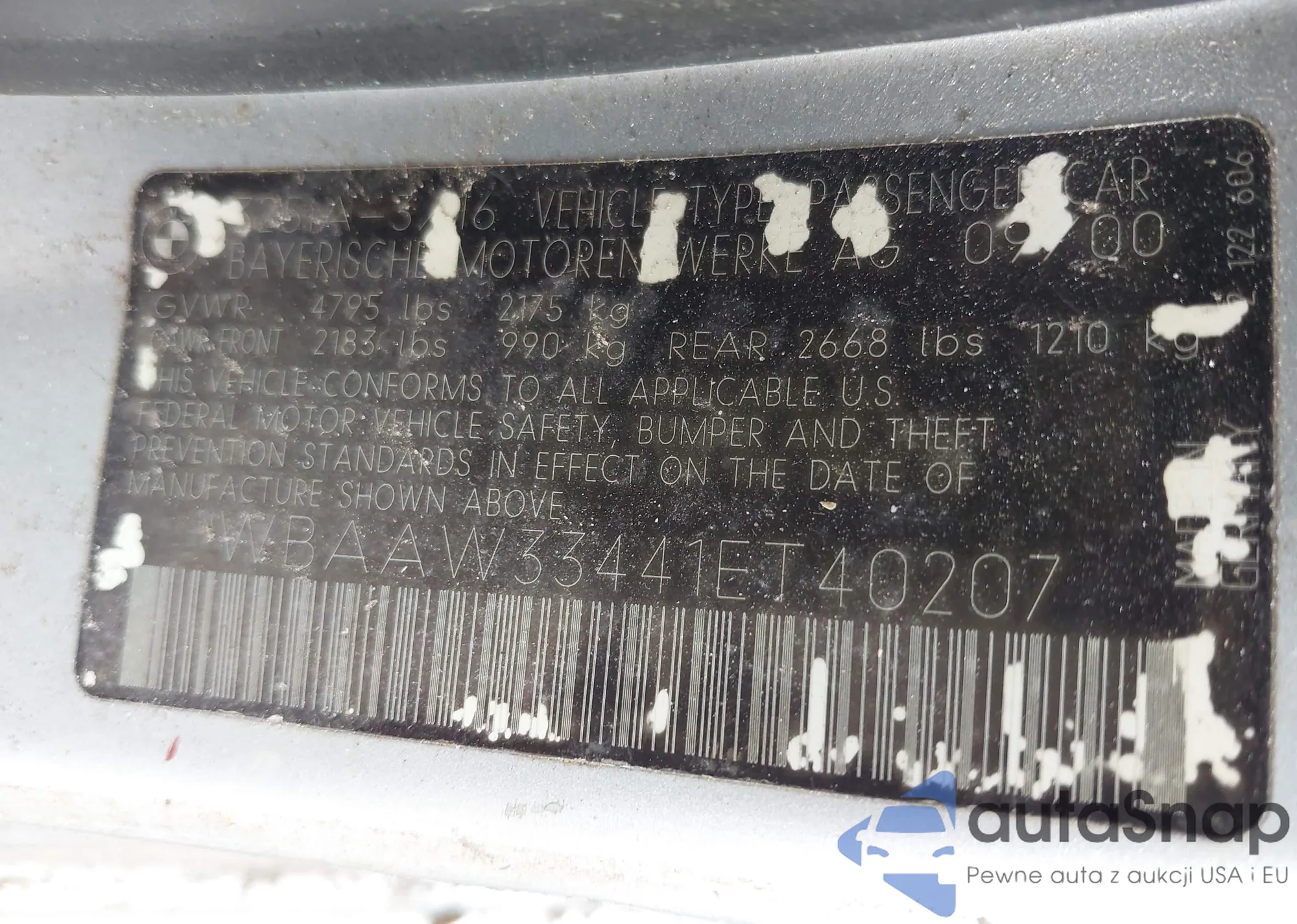 LOT: 42436532 VIN: WBAAW33441ET40207