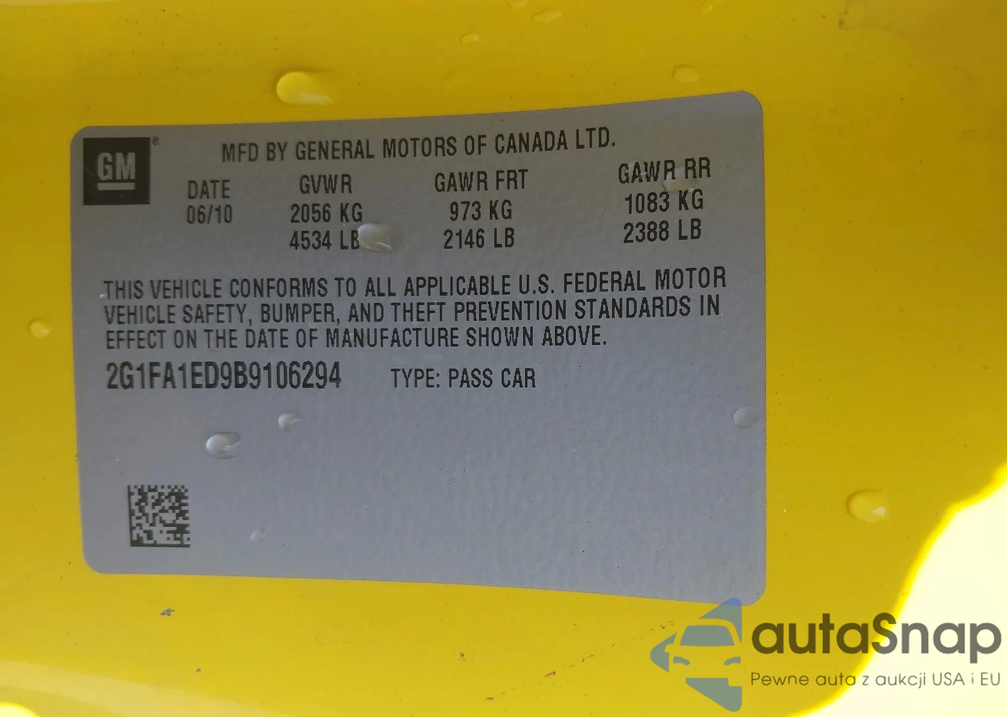 • VIN 2G1FA1ED9B9106294