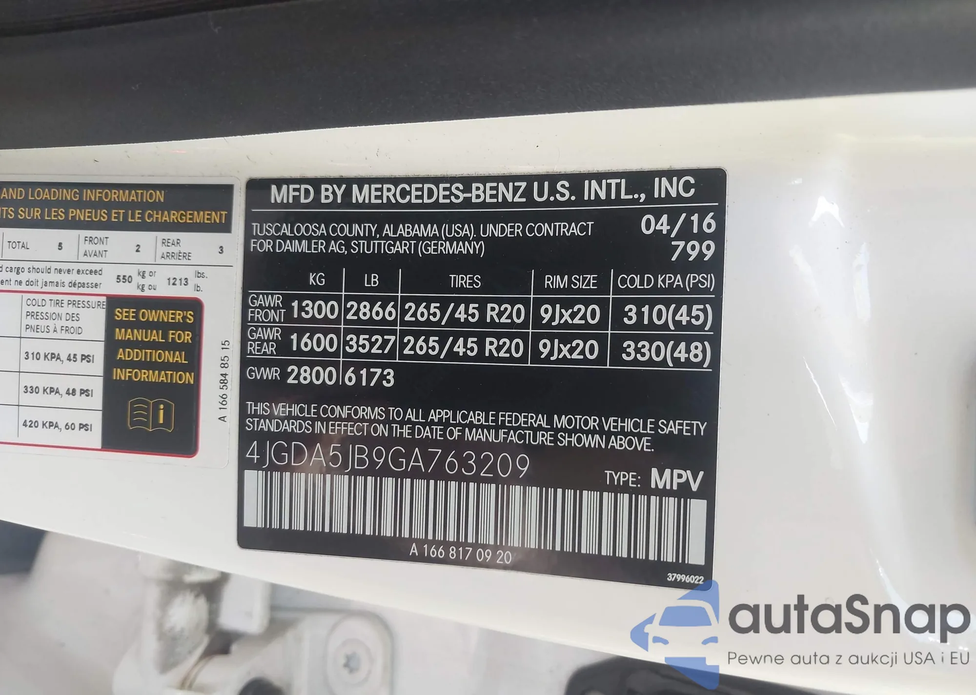 • VIN 4JGDA5JB9GA763209