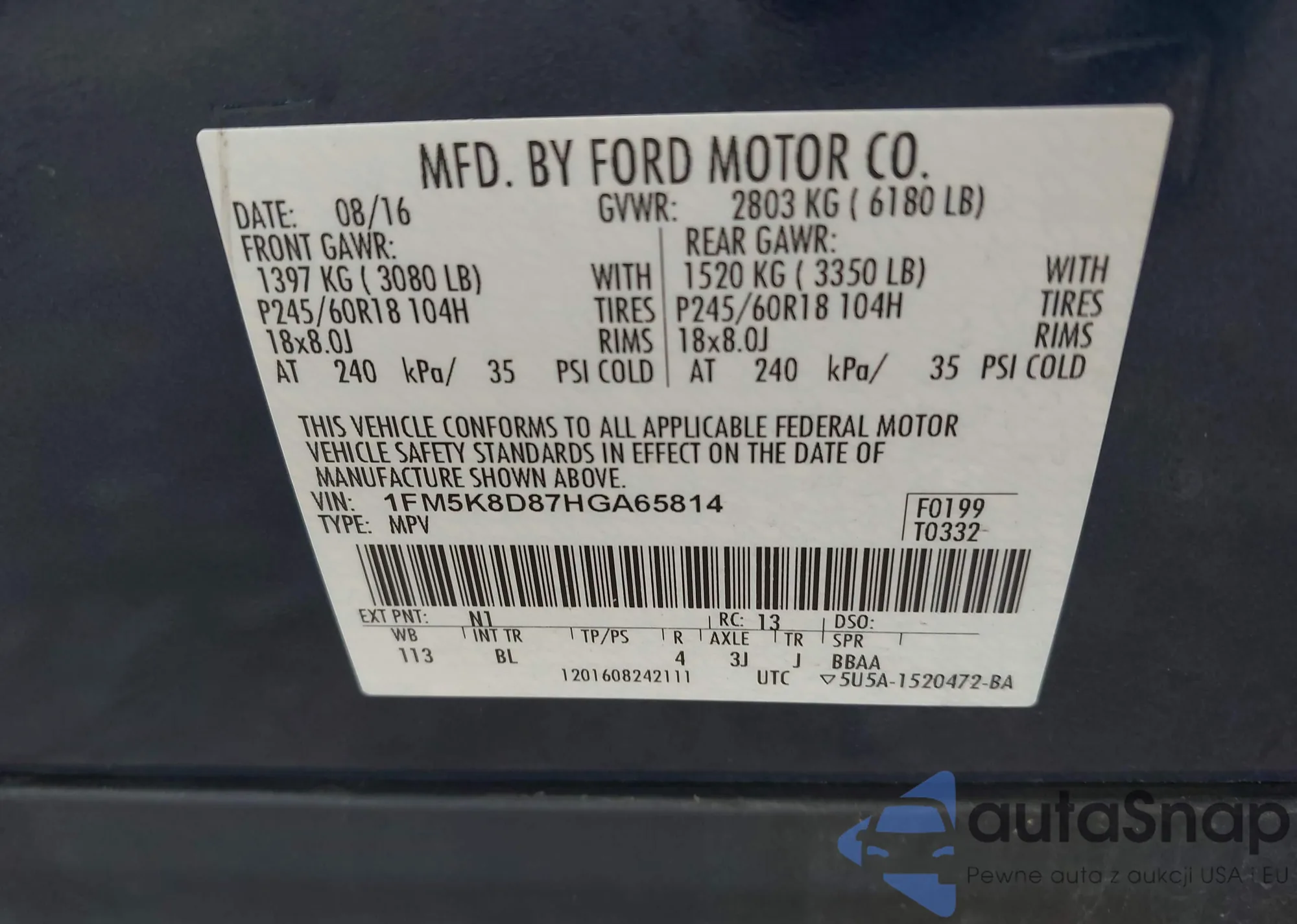 • VIN 1FM5K8D87HGA65814