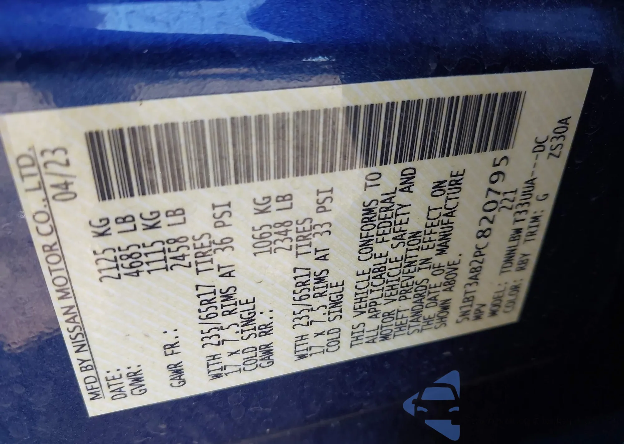 • VIN KNDJ23AU4P7860664