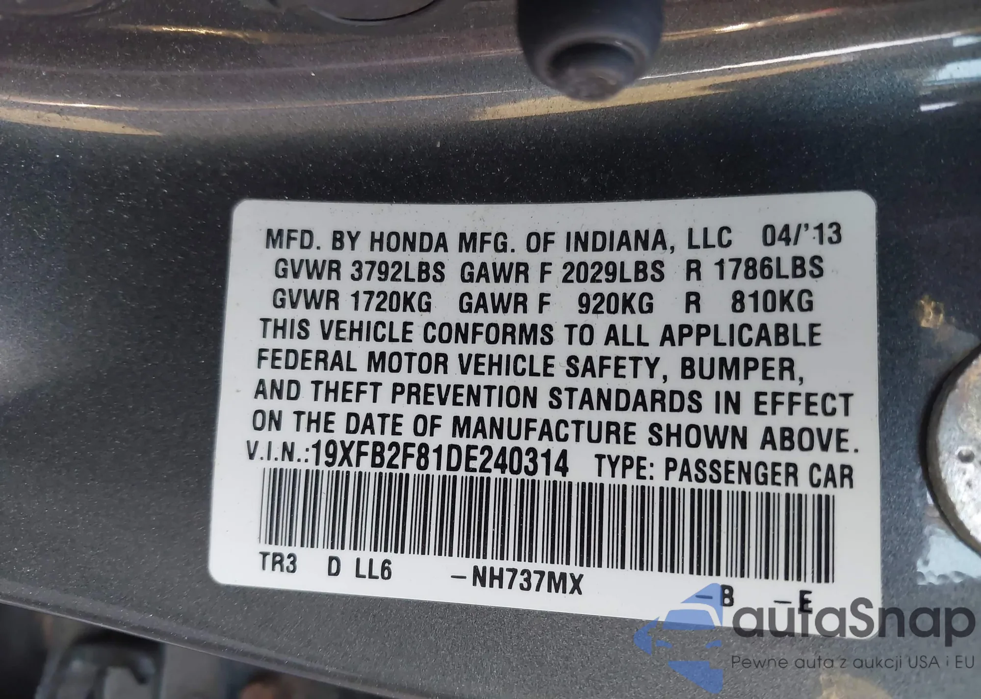 • VIN 19XFB2F81DE240314