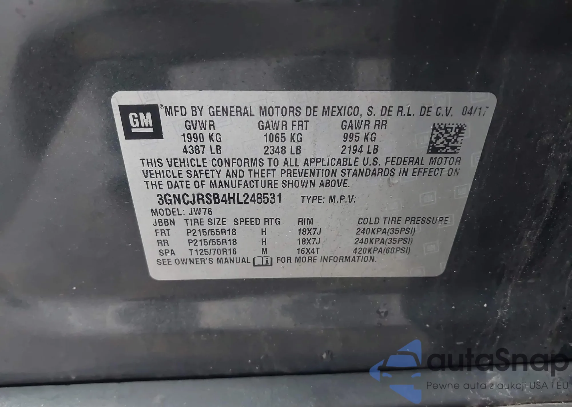 LOT: 42582203 VIN: JTEBU17R360104154