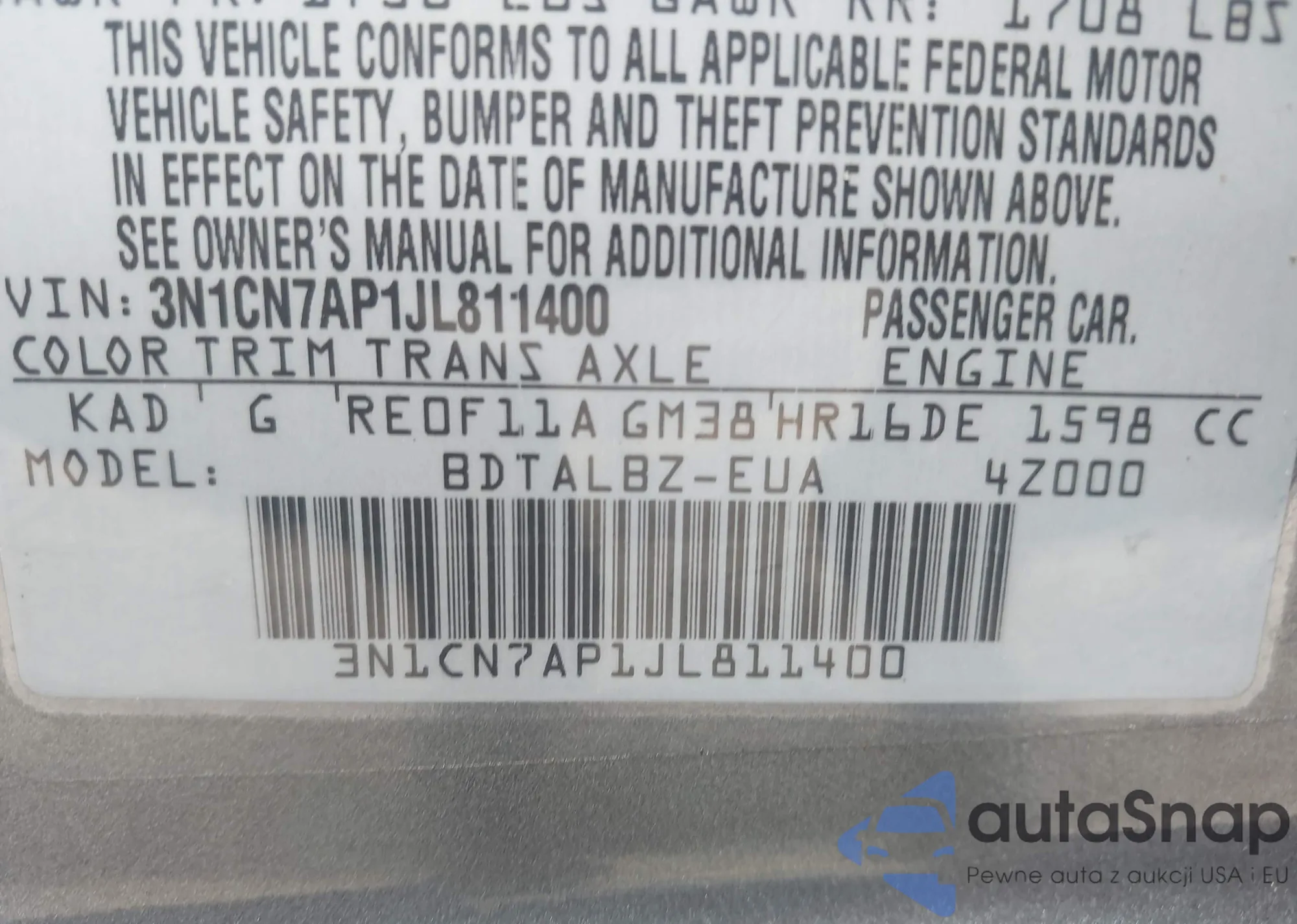 • VIN 3N1CN7AP1JL811400