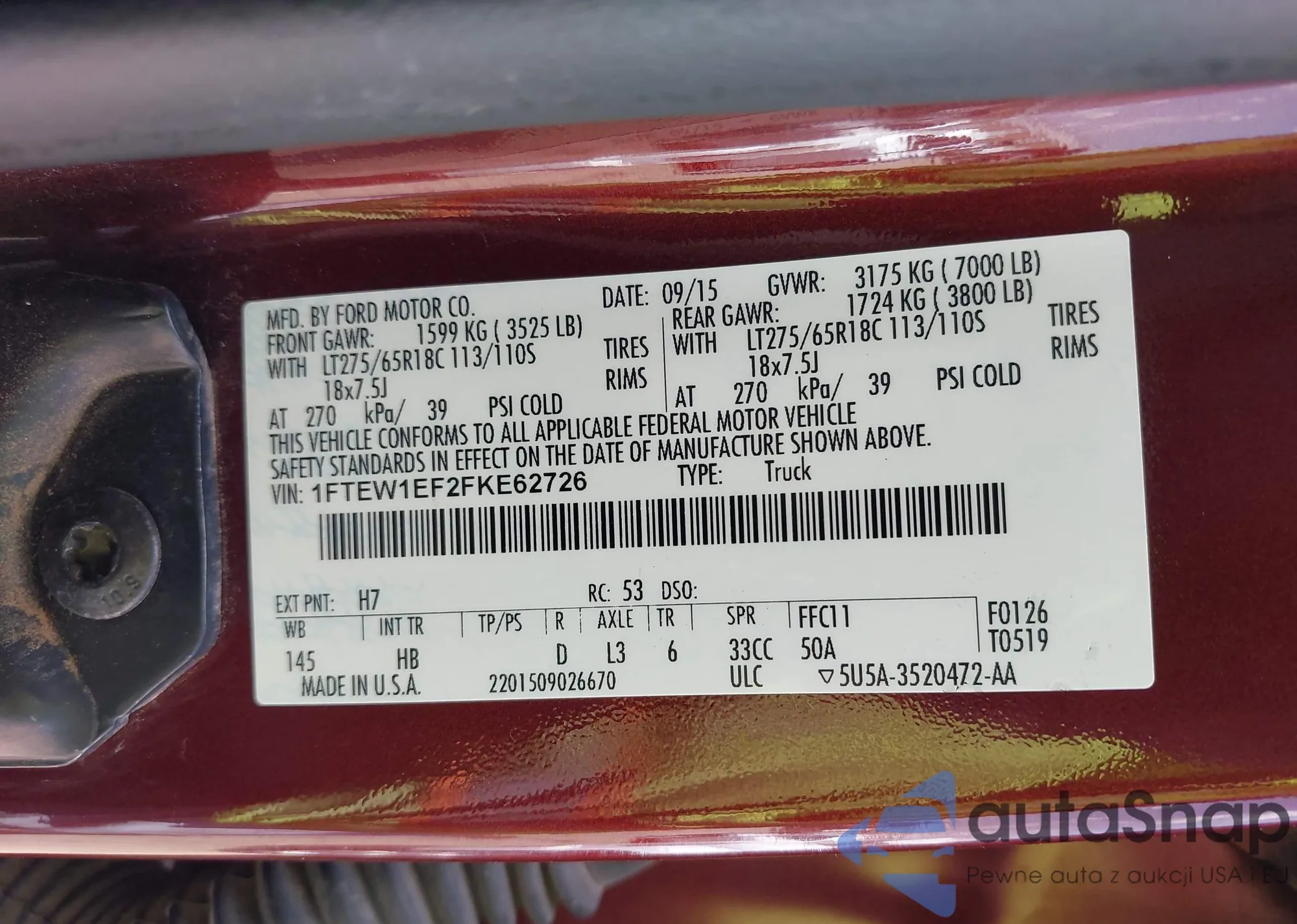 LOT: 42539814 VIN: 1FTEW1EF2FKE62726