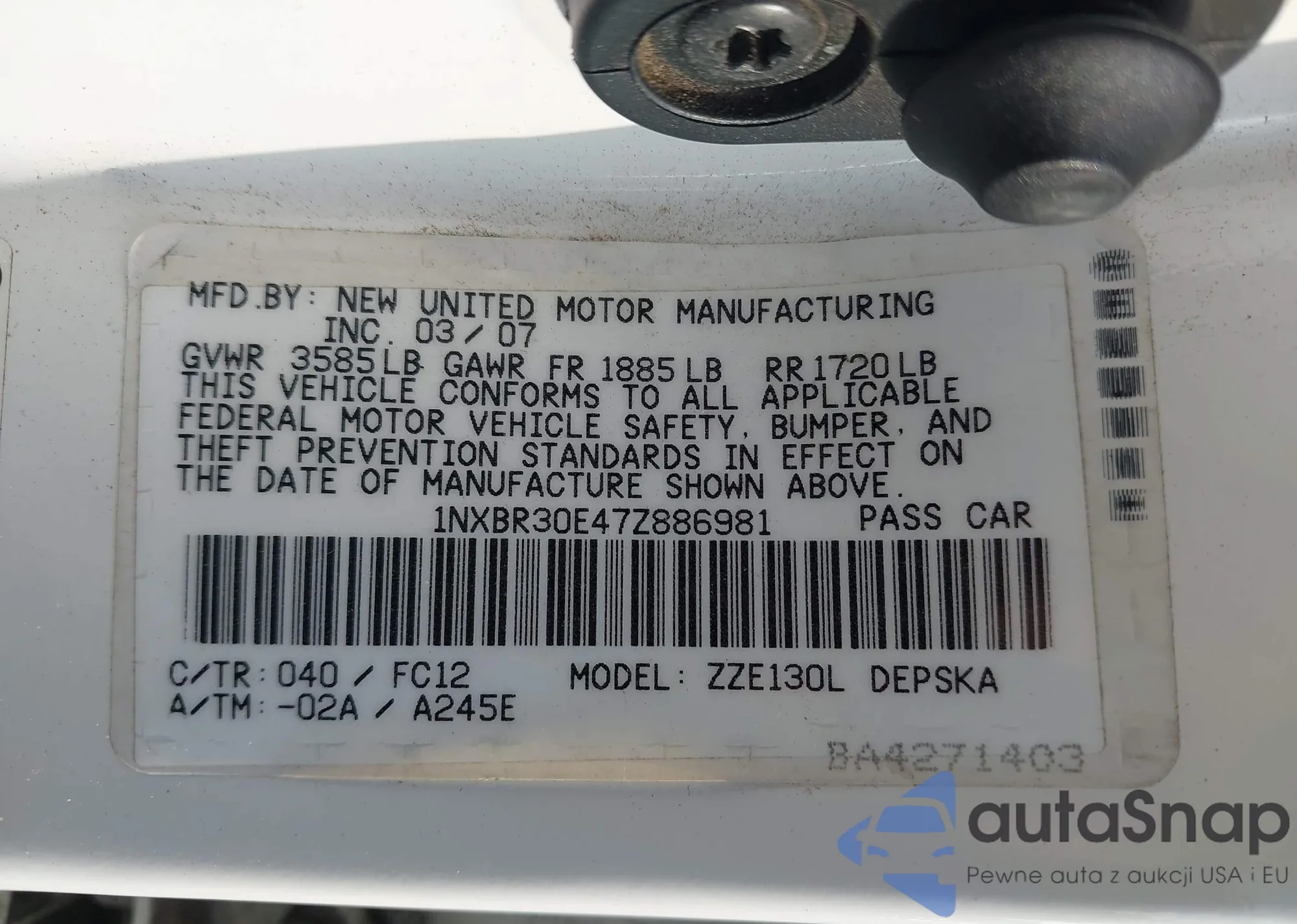 LOT: 42602353 VIN: 1NXBR30E47Z886981