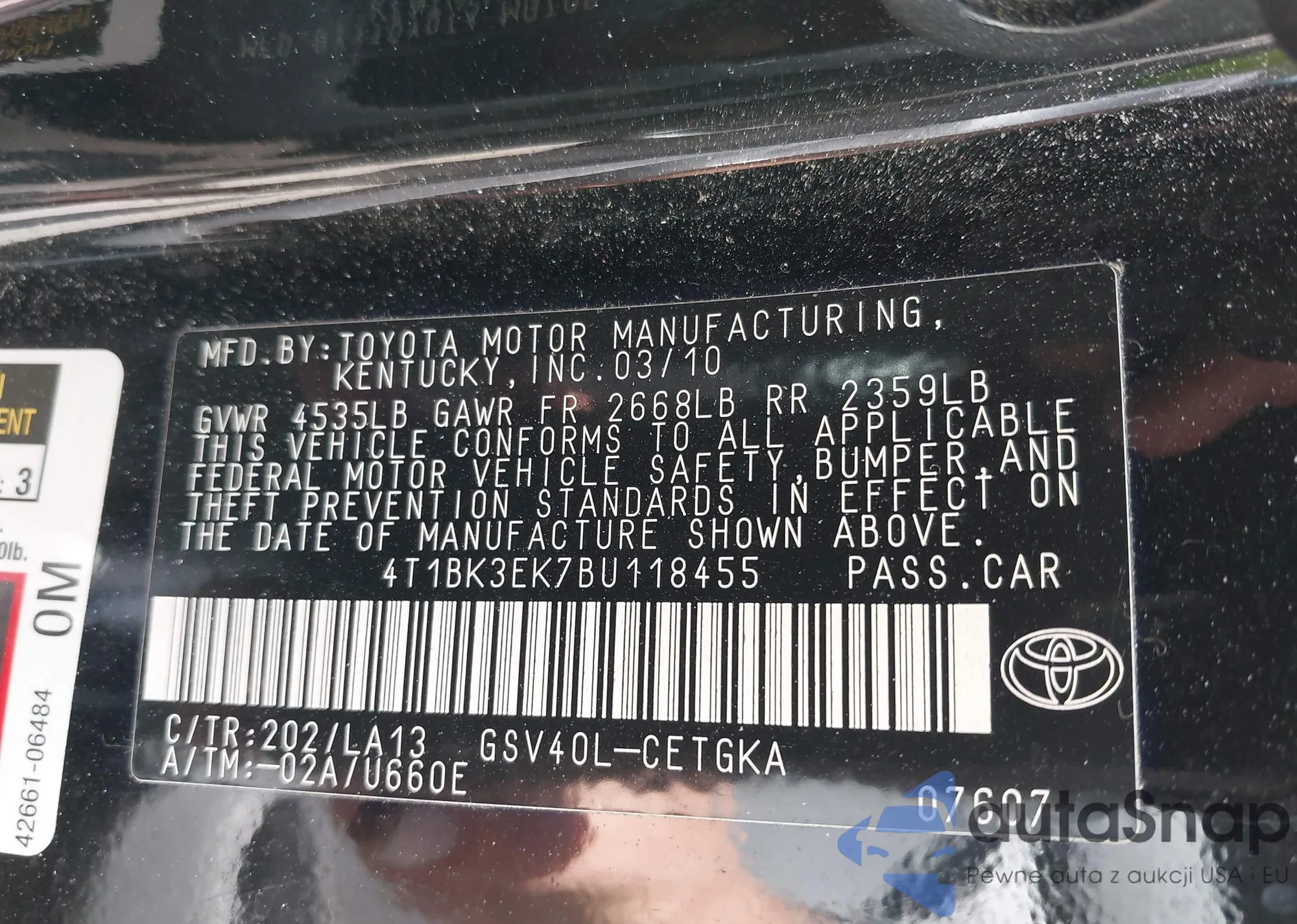• VIN 4T1BK3EK7BU118455