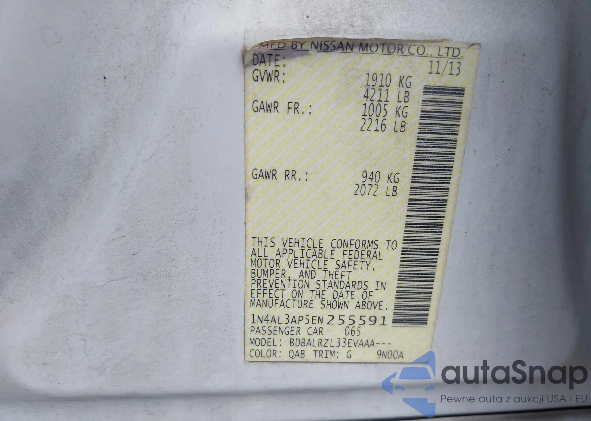 LOT: 42634608 VIN: 1N4AL3AP5EN255591