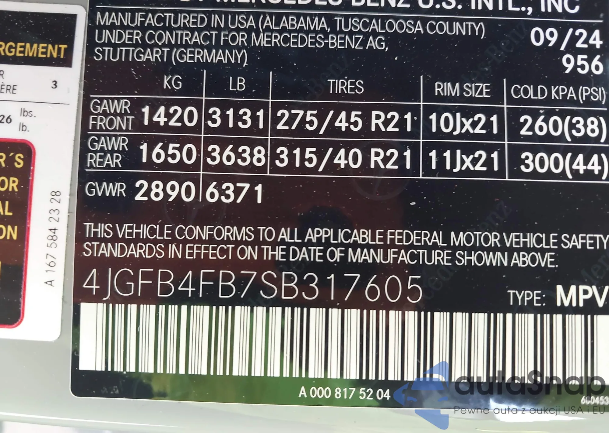 • VIN 4JGFB4FB7SB317605