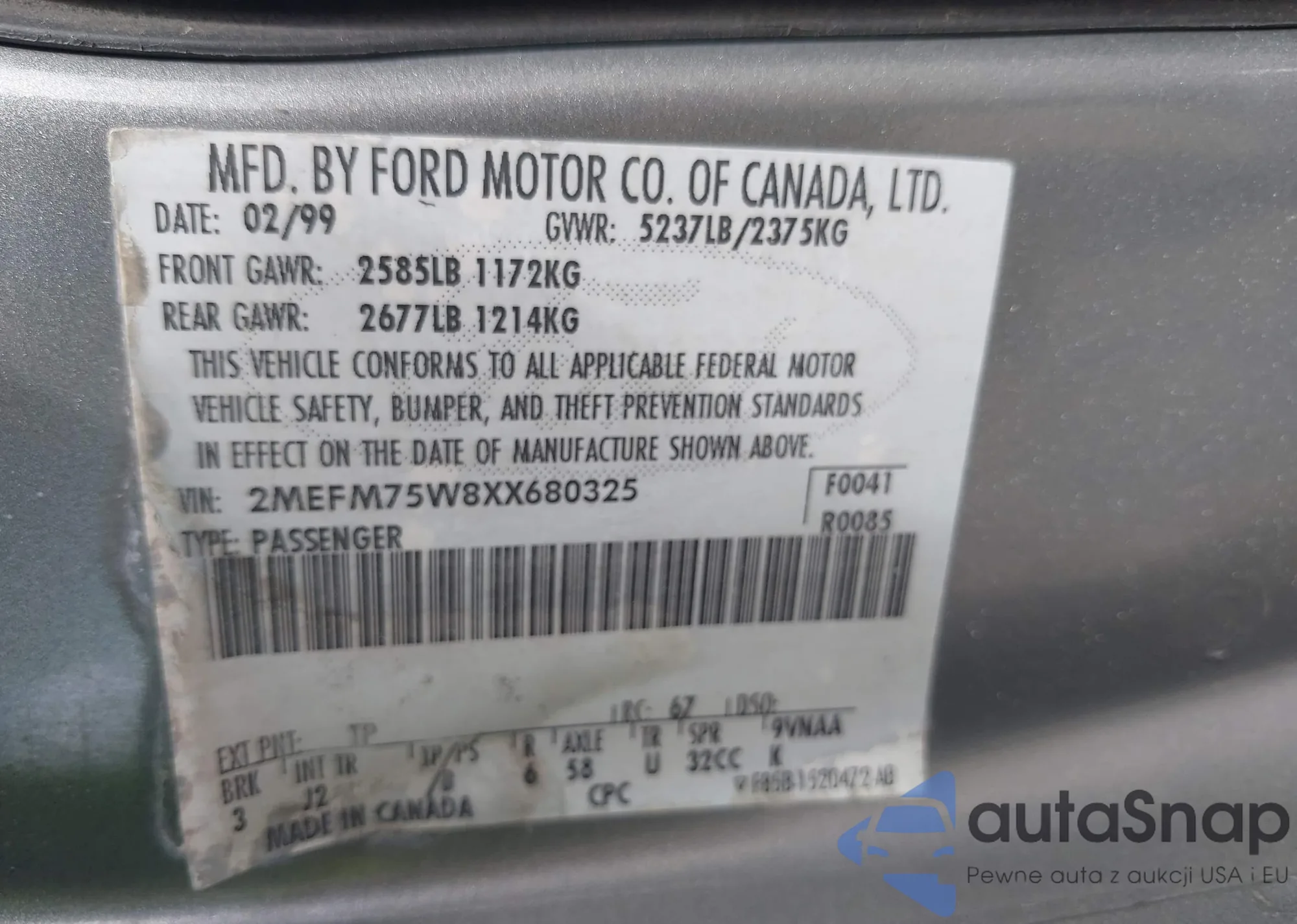 • VIN 2MEFM75W8XX680325