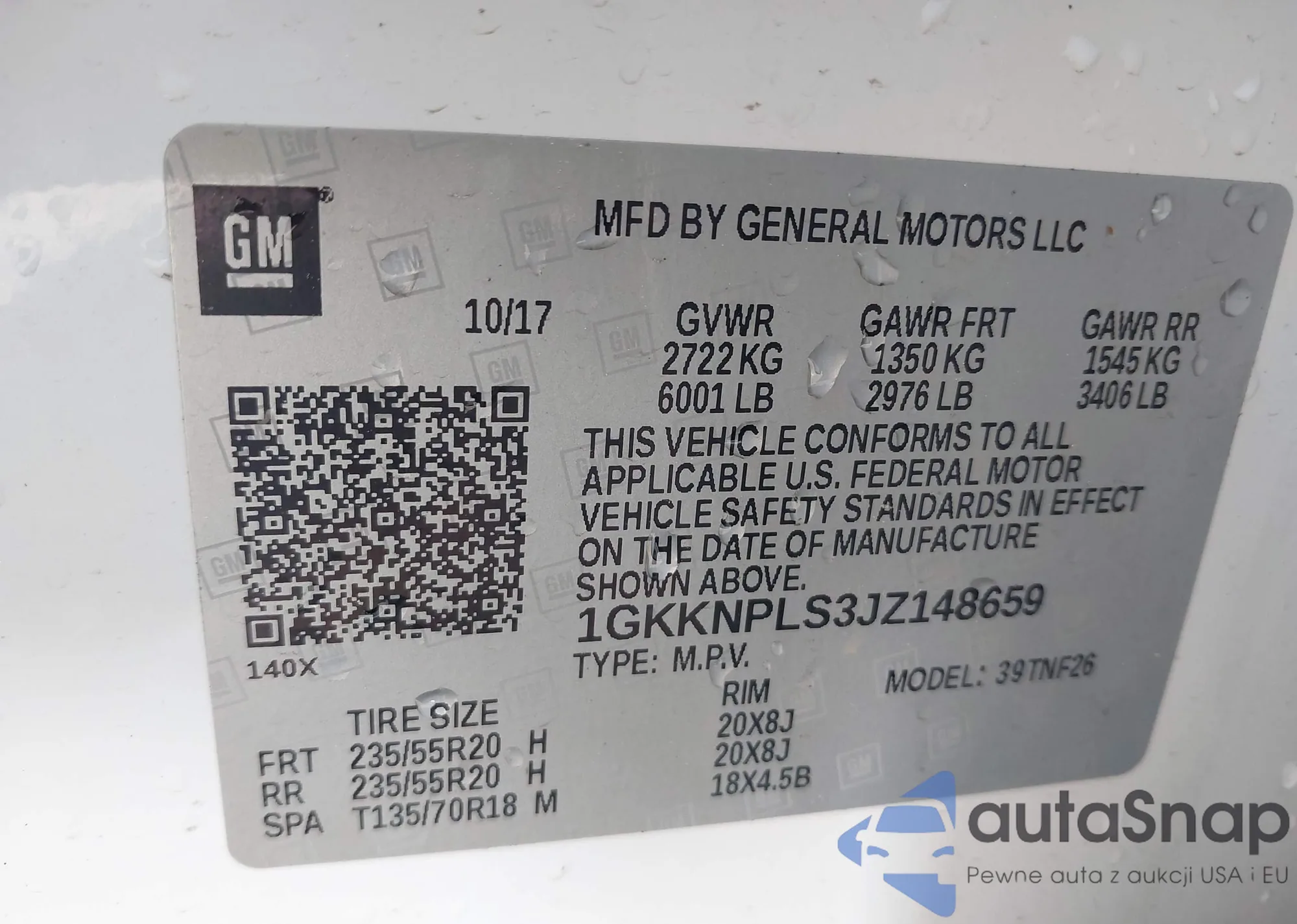 LOT: 42319104 VIN: WBA8E1C51HK895061