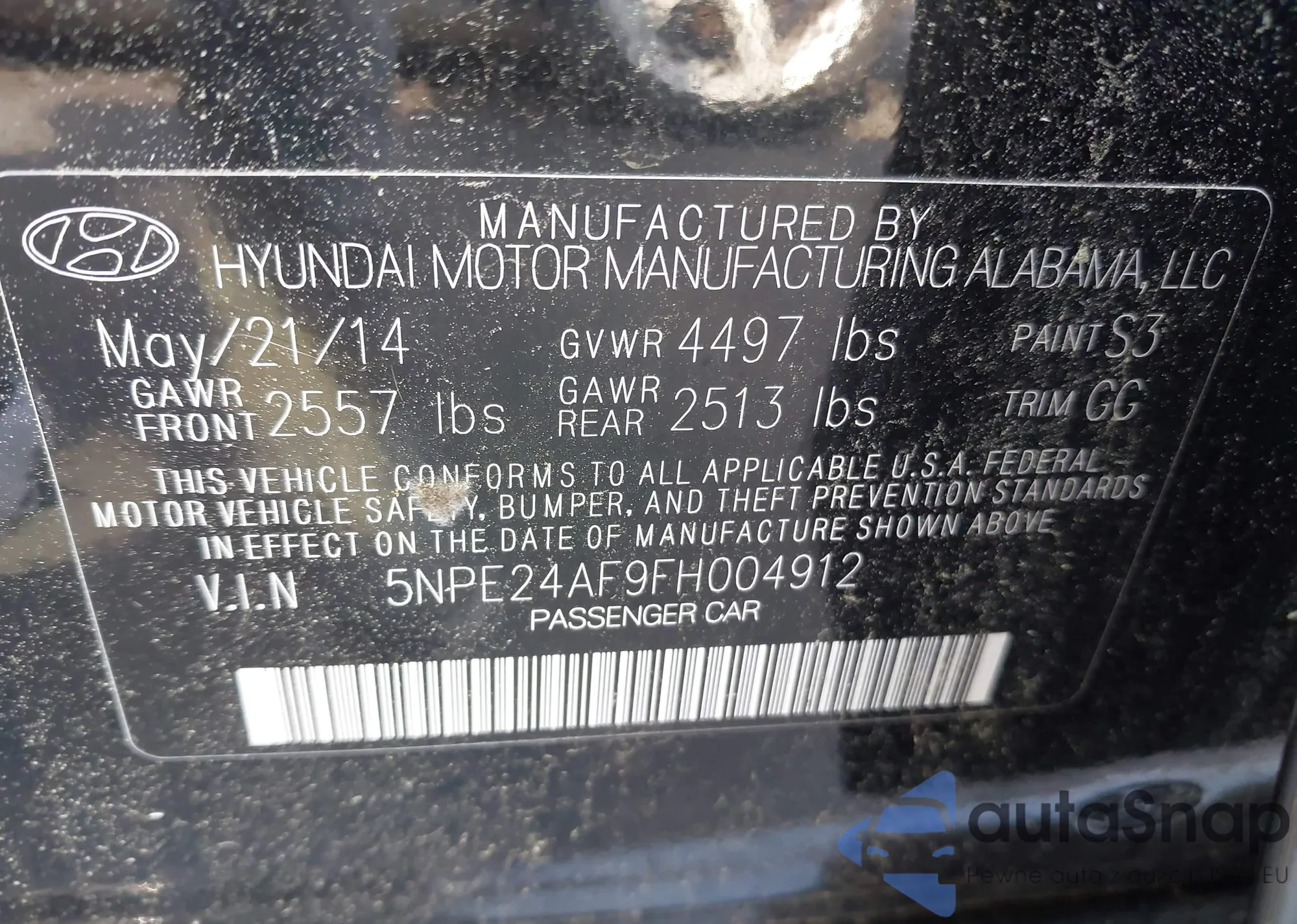 • VIN 5NPE24AF9FH004912