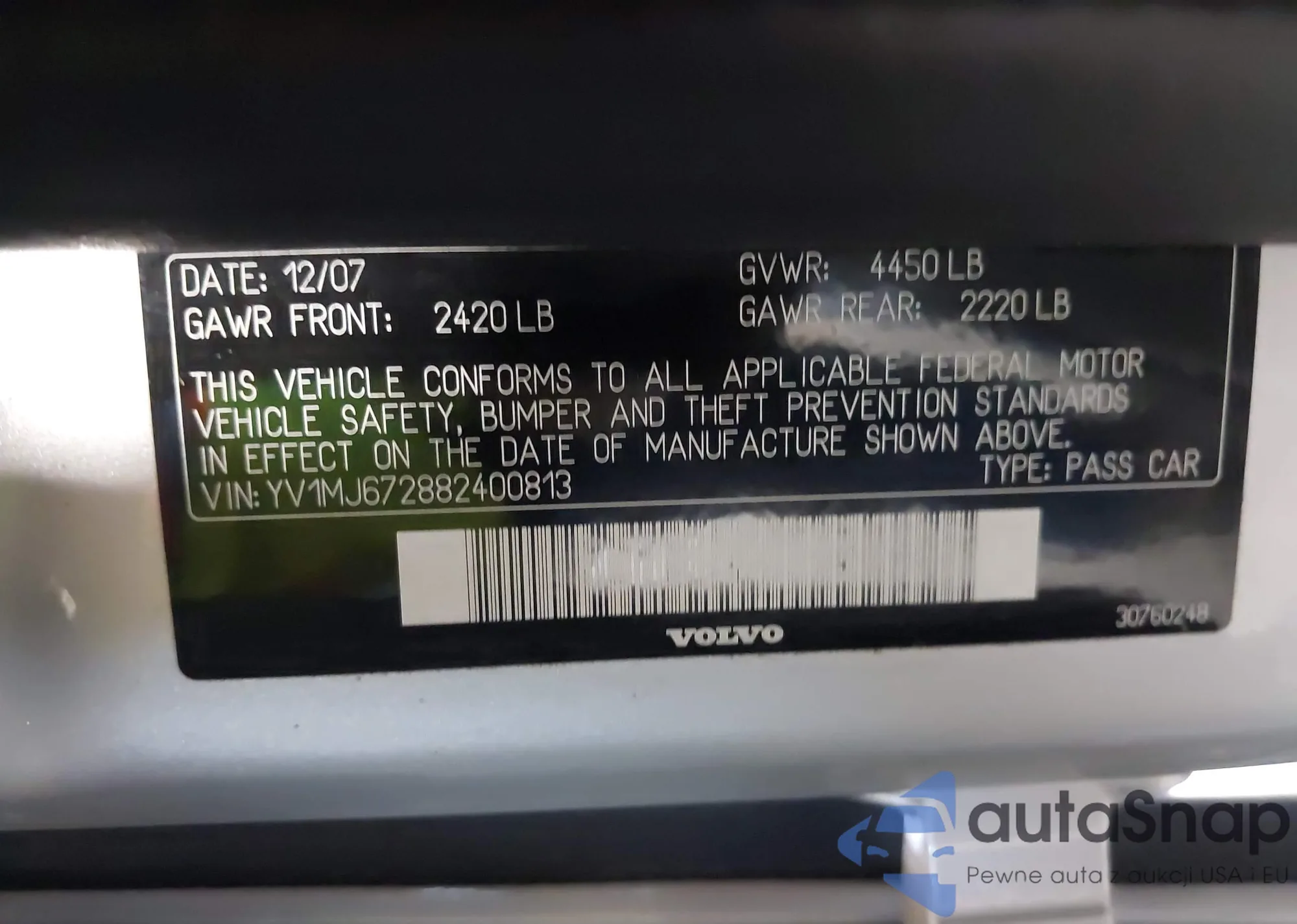 • VIN YV1MJ672882400813