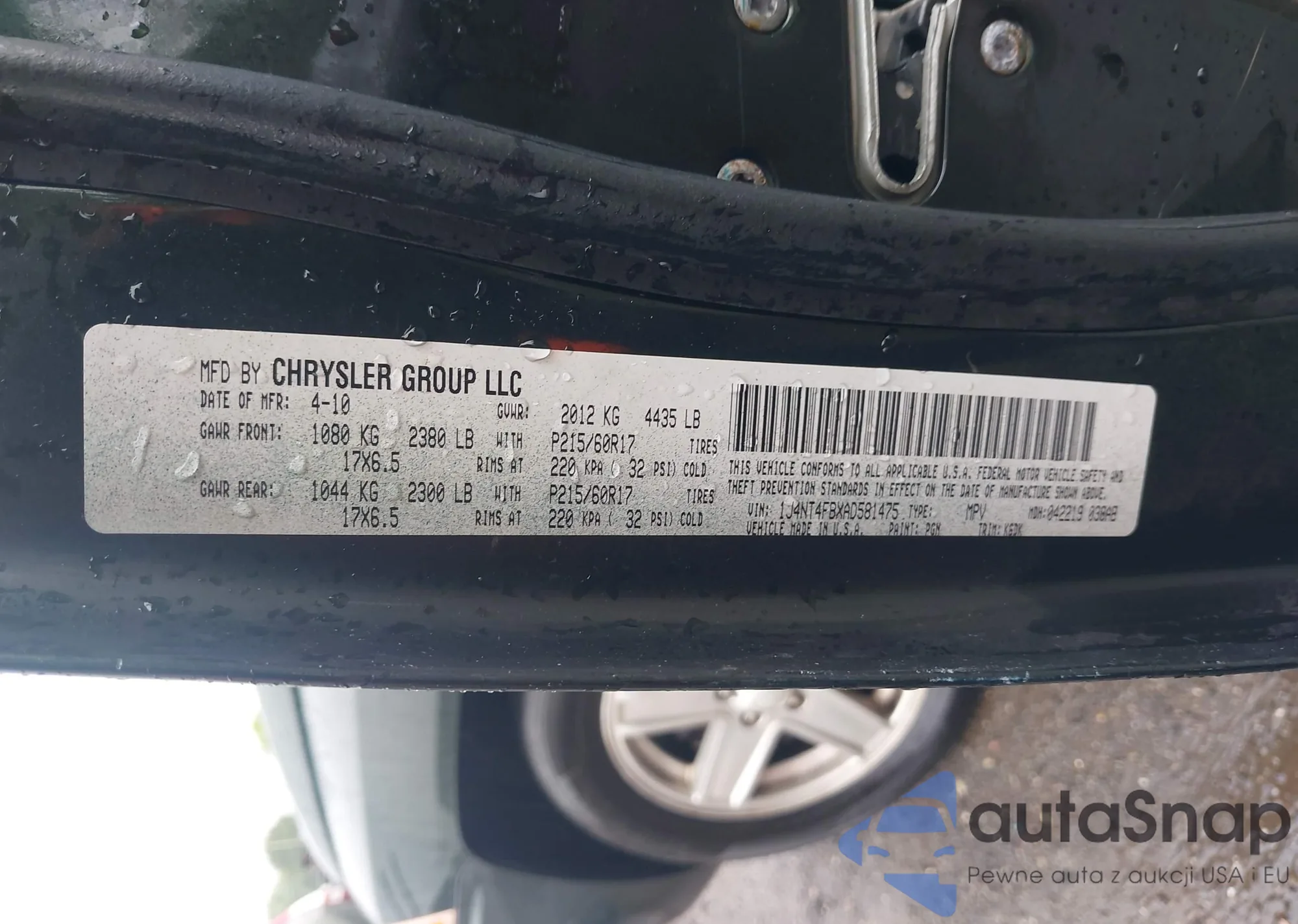 LOT: 42362776 VIN: 1J4NT4FBXAD581475