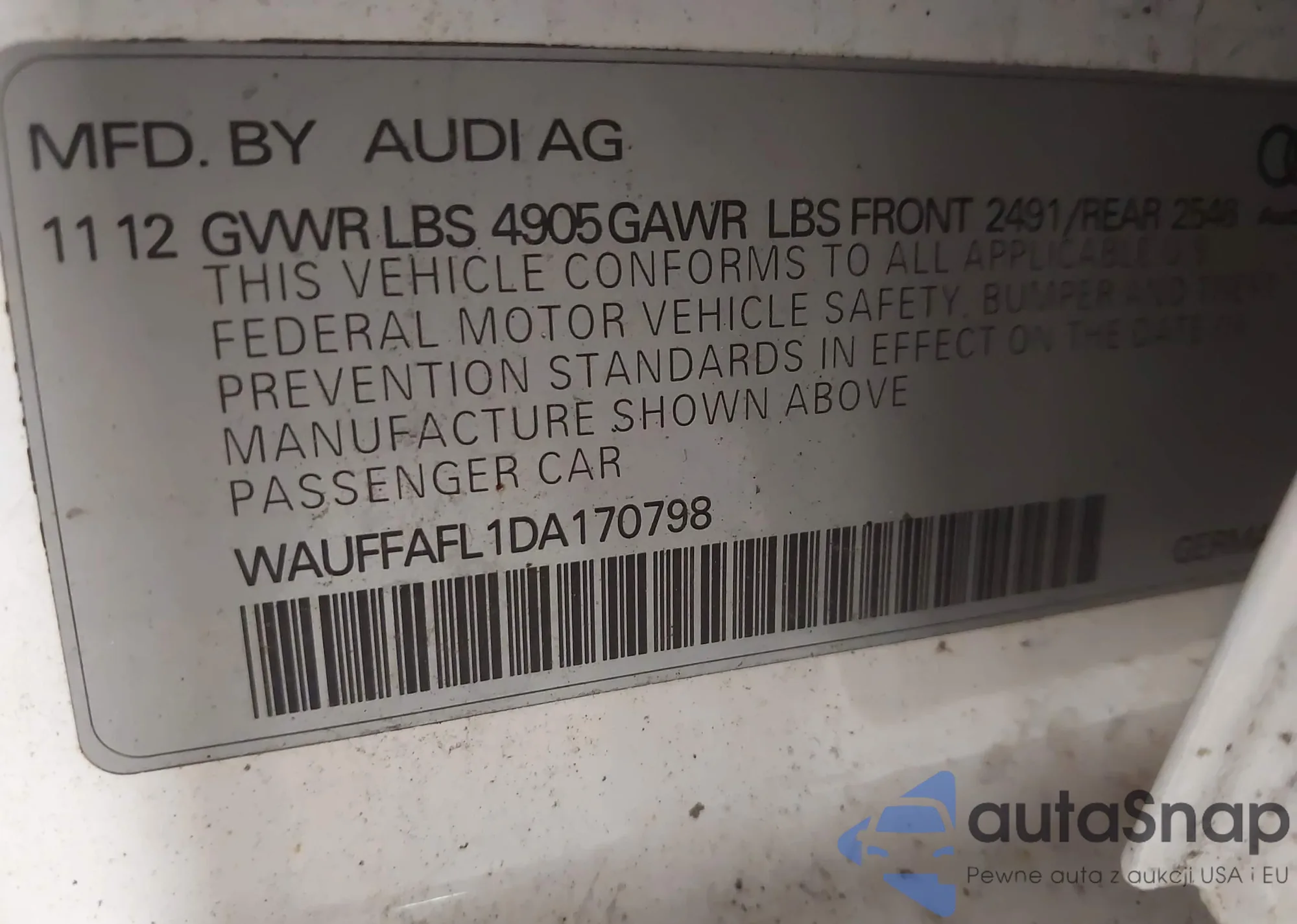 • VIN WAUFFAFL1DA170798