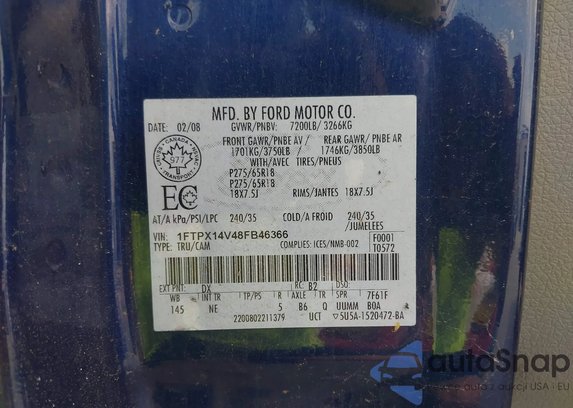 LOT: 42497318 VIN: 1FTPX14V48FB46366