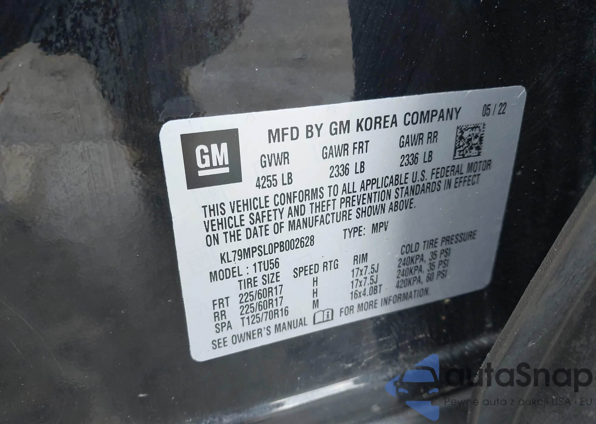 • VIN KL79MPSL0PB002628