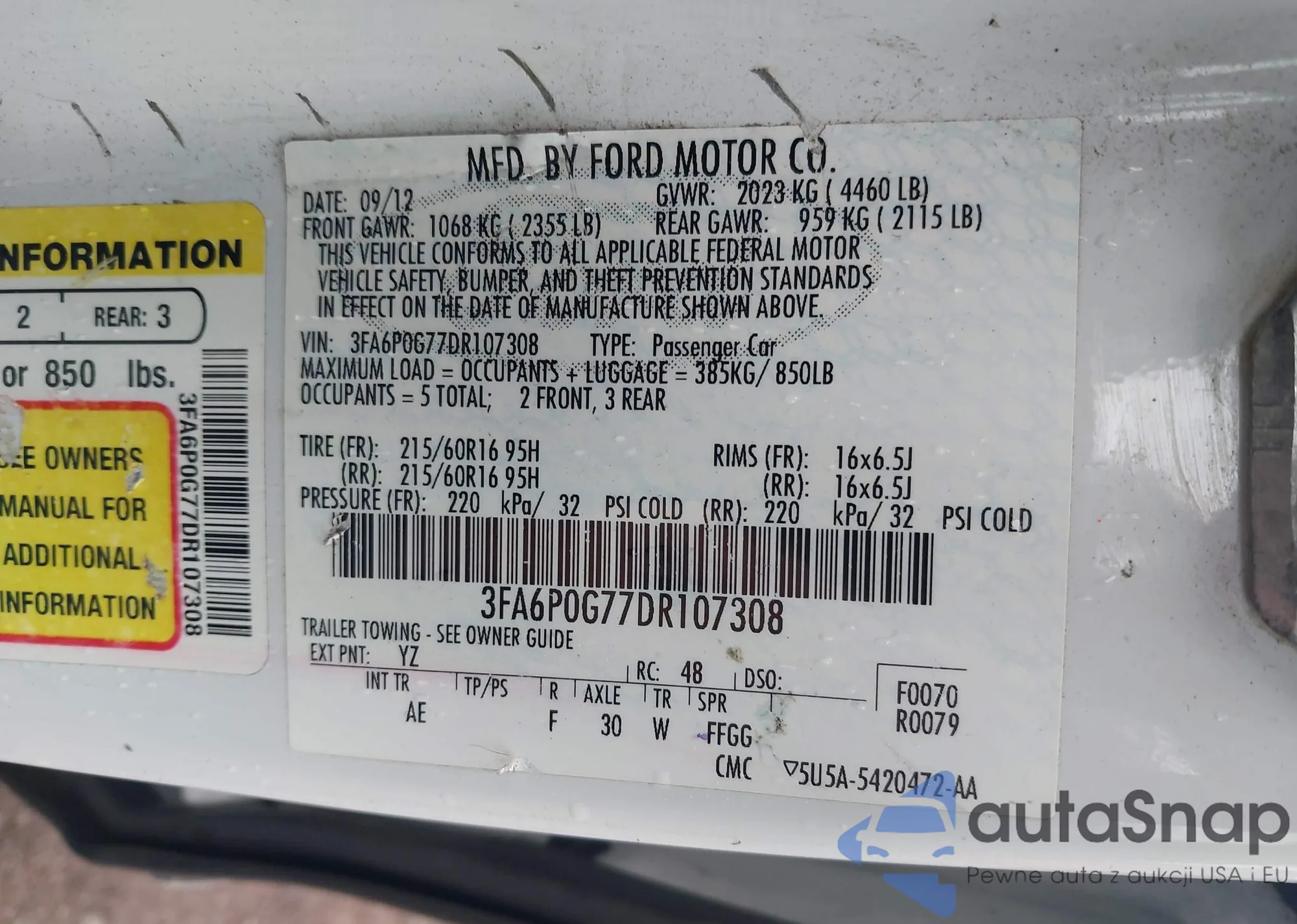 LOT: 42501966 VIN: 2HGFB2F57DH579784