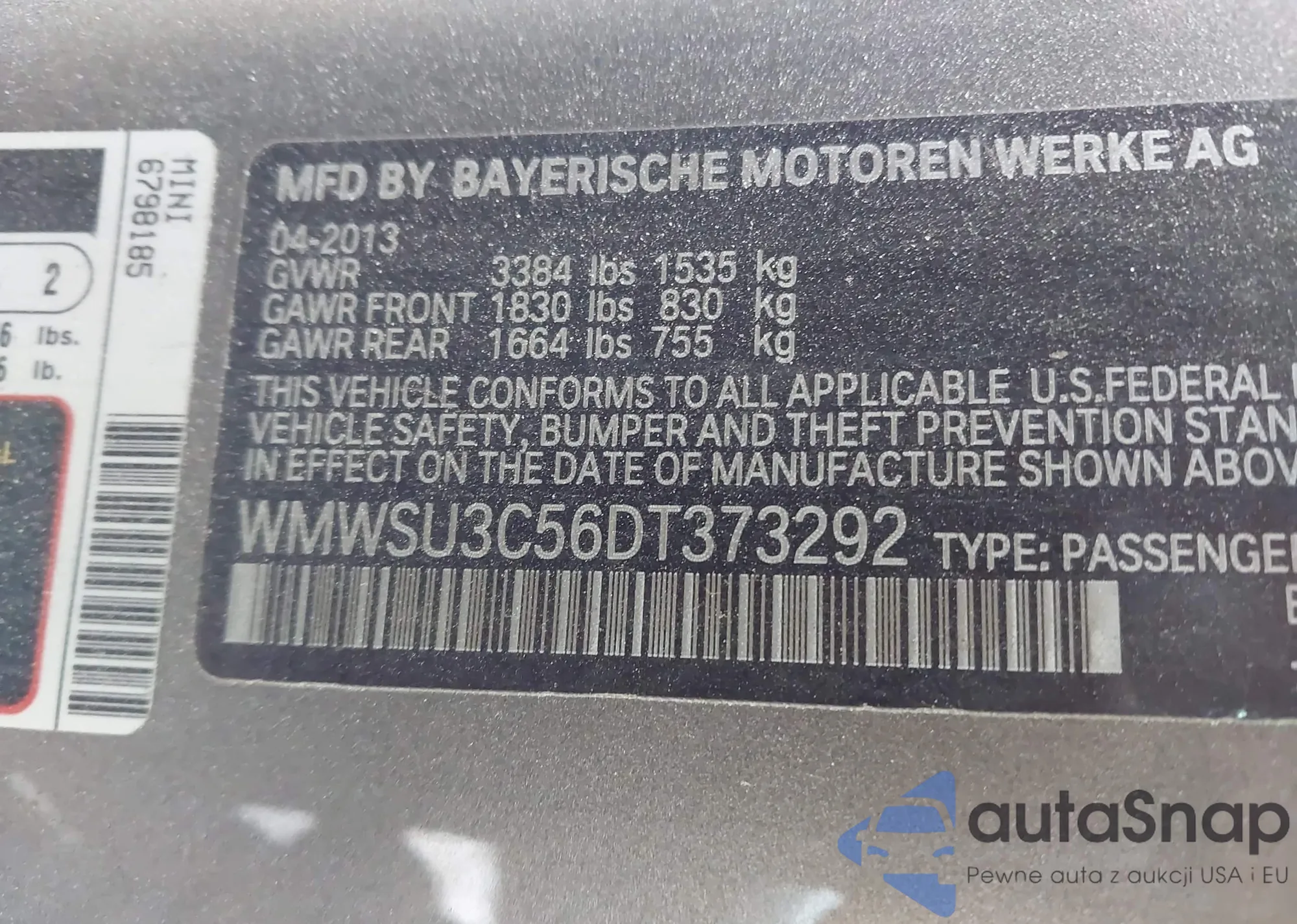 • VIN WMWSU3C56DT373292