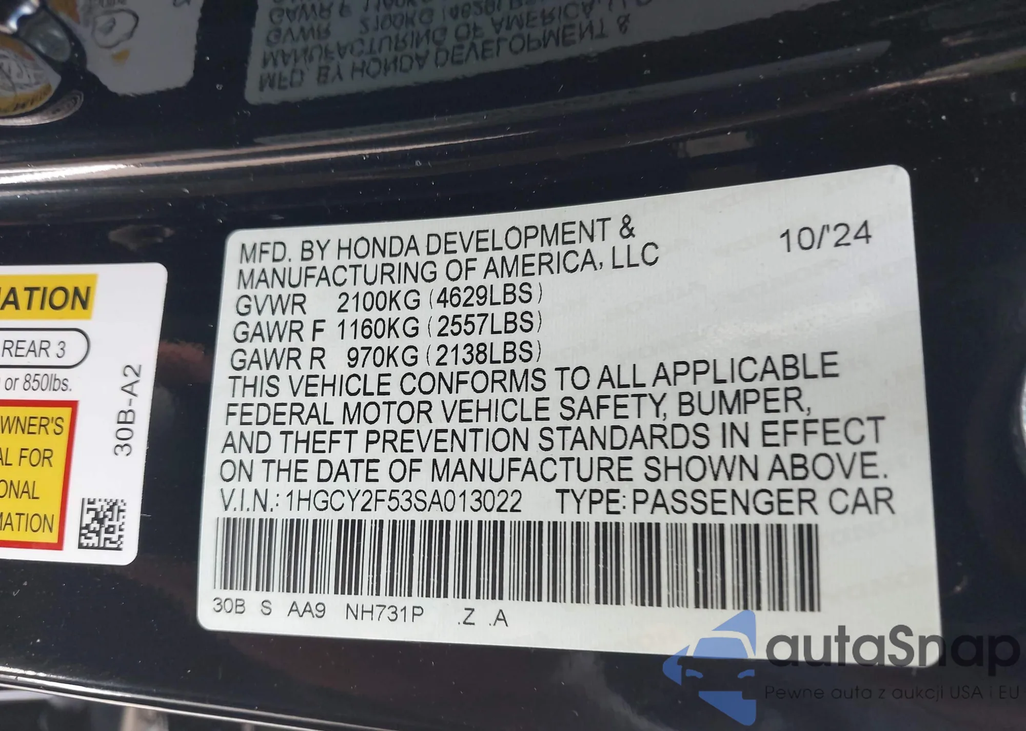 • VIN 1HGCY2F53SA013022