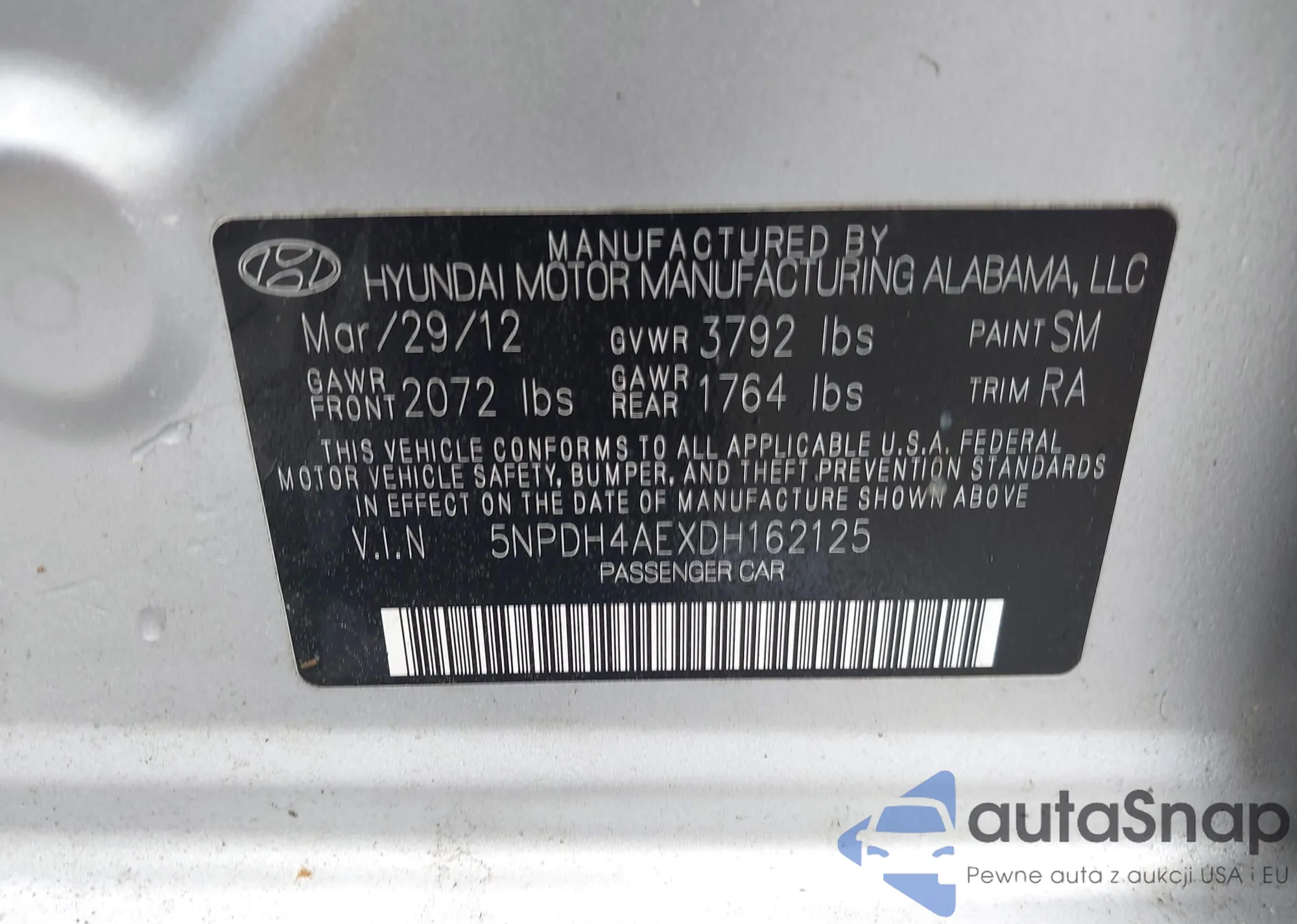• VIN 5NPDH4AEXDH162125