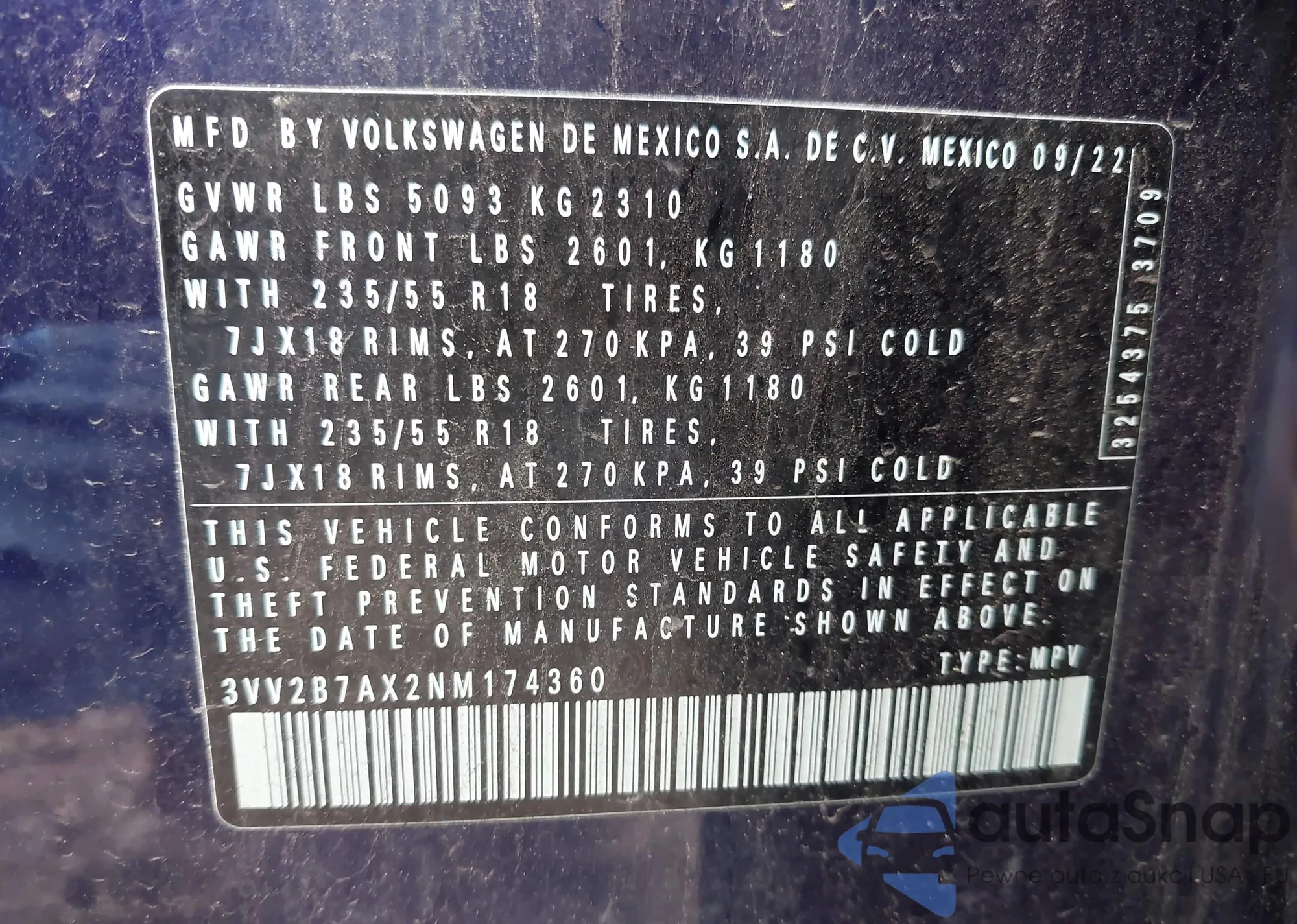 • VIN 5YJ3E1EA6SF014611
