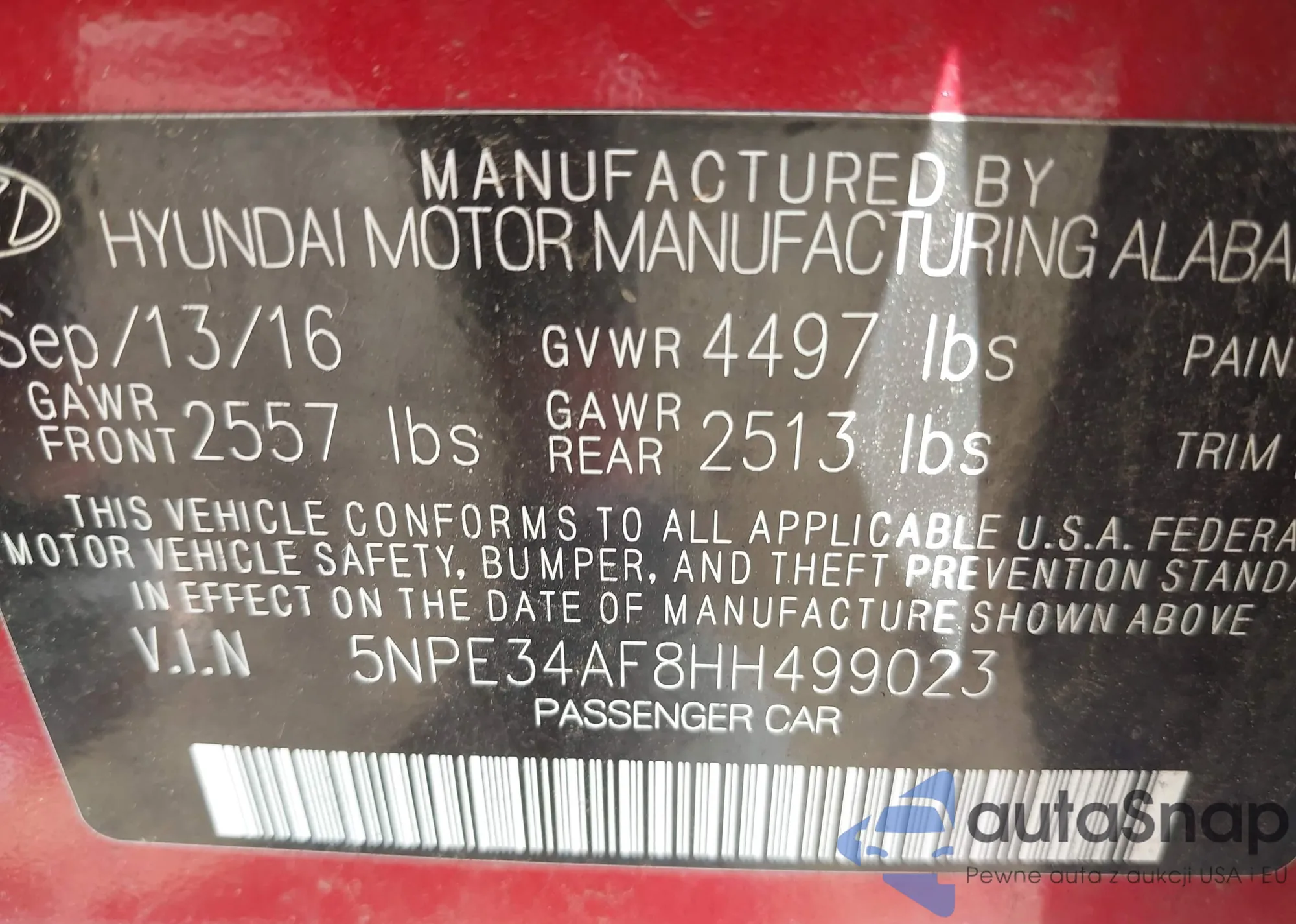 LOT: 42636042 VIN: KMHCT5AE6HU306373