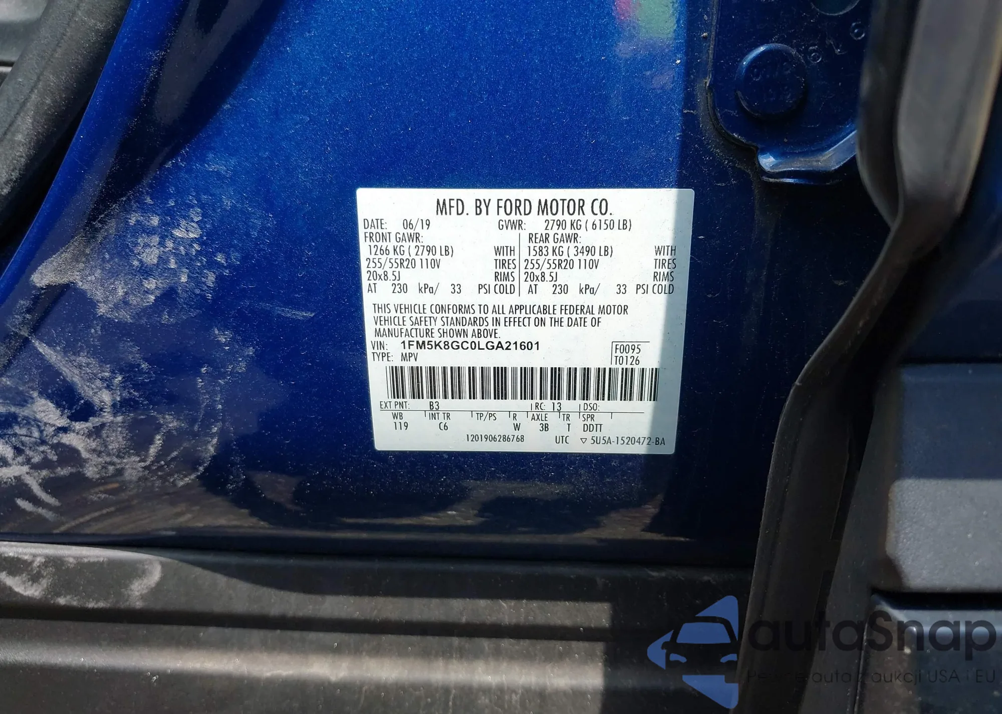 LOT: 42730222 VIN: 55SWF4KB3FU081695
