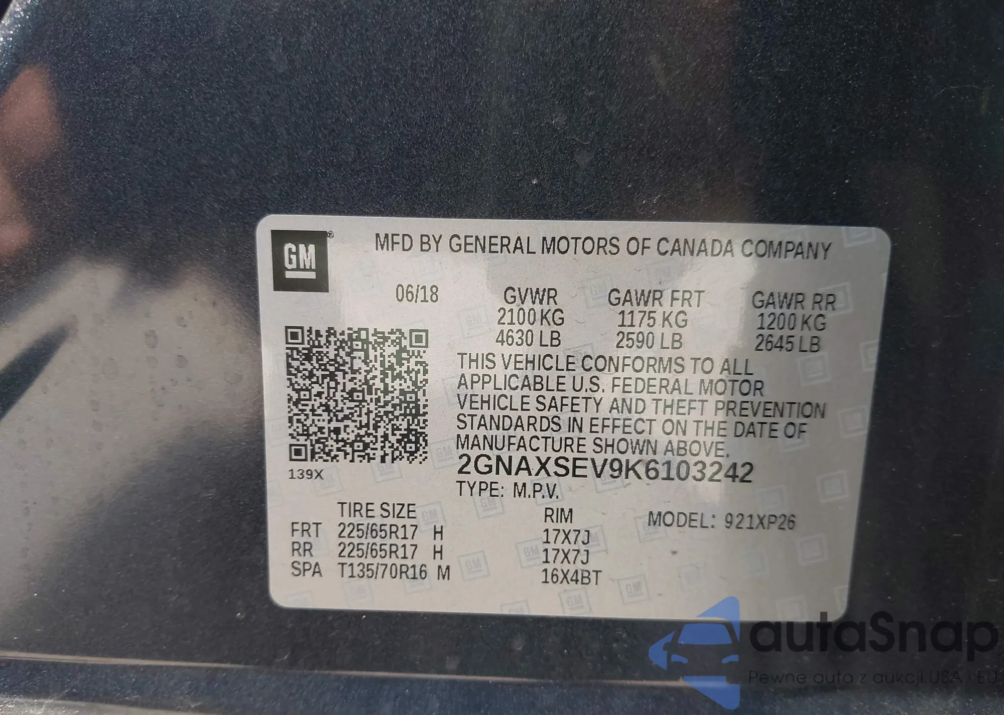 • VIN 2GNAXSEV9K6103242