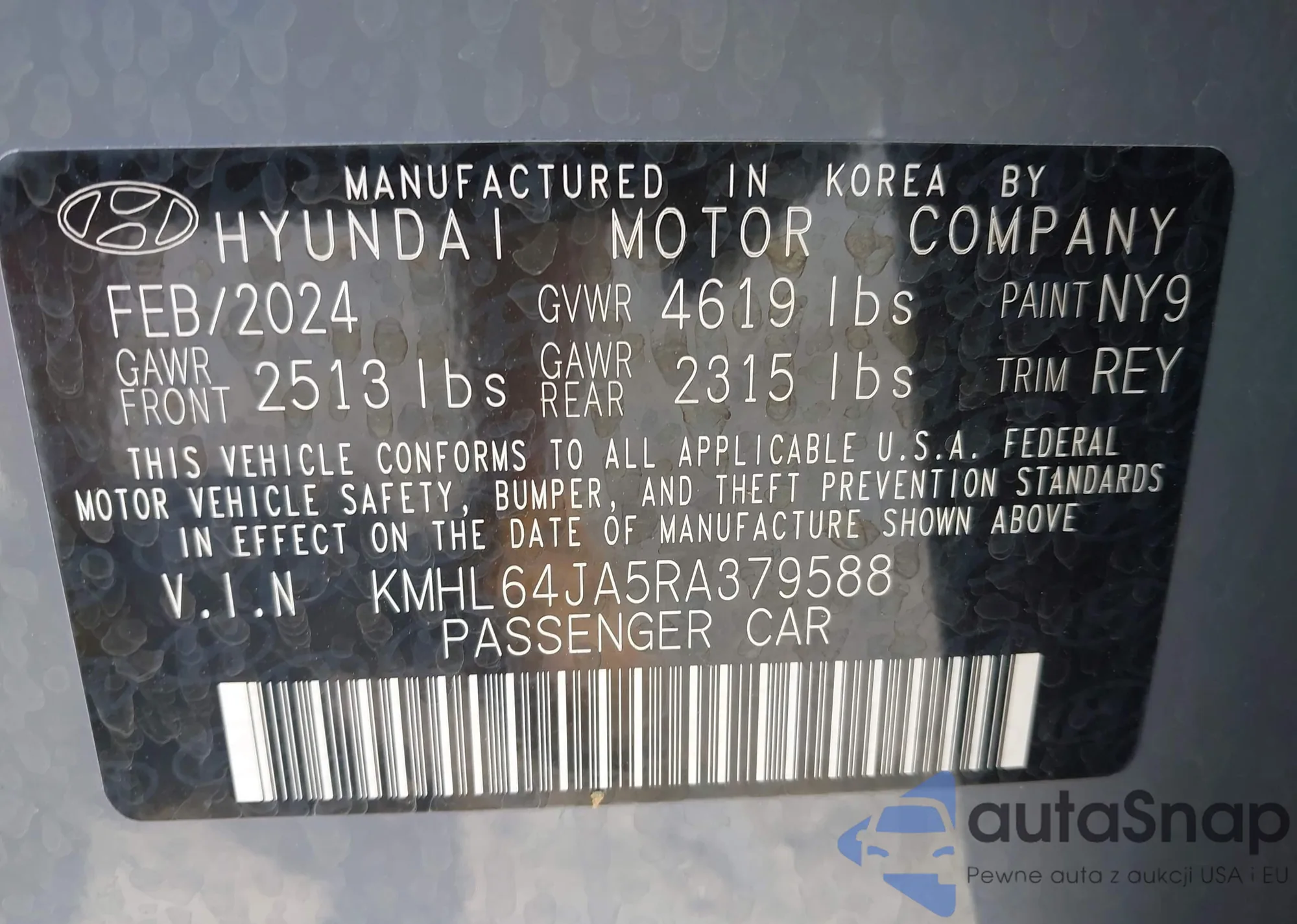 • VIN KMHL64JA5RA379588