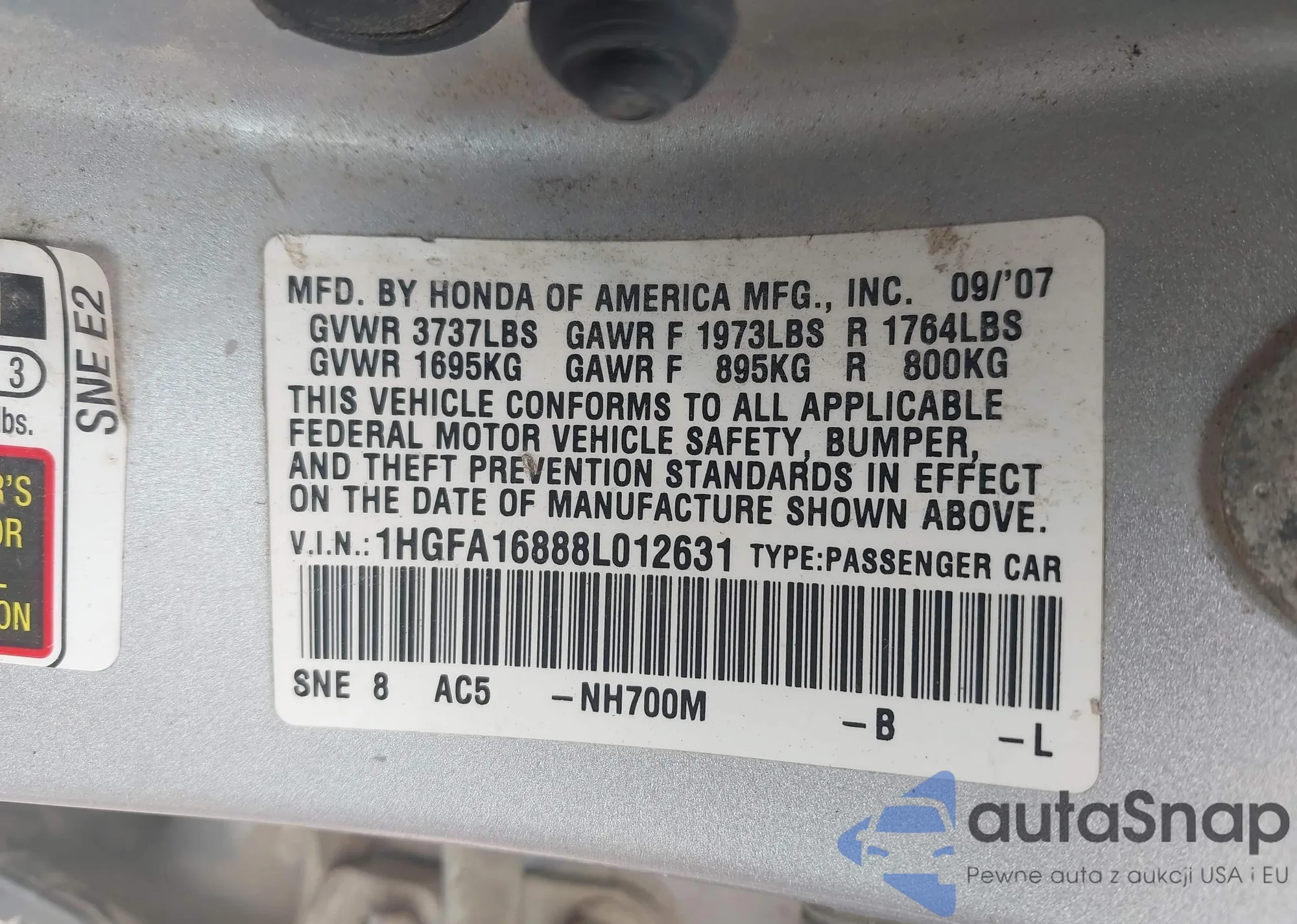 • VIN 2HGFE1F78NH318409