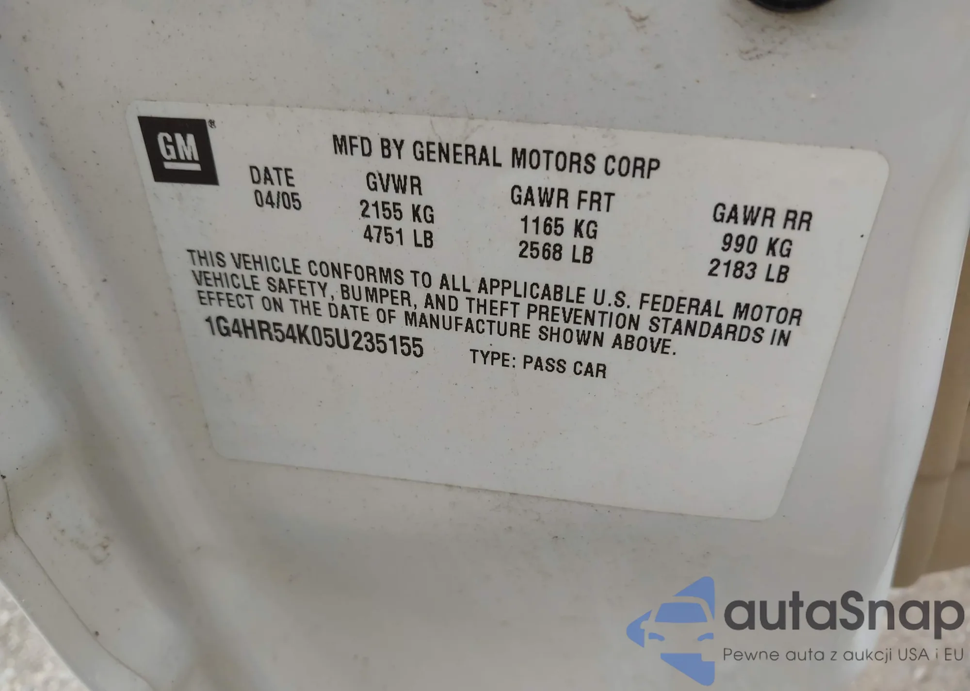 • VIN 1G4HR54K05U235155