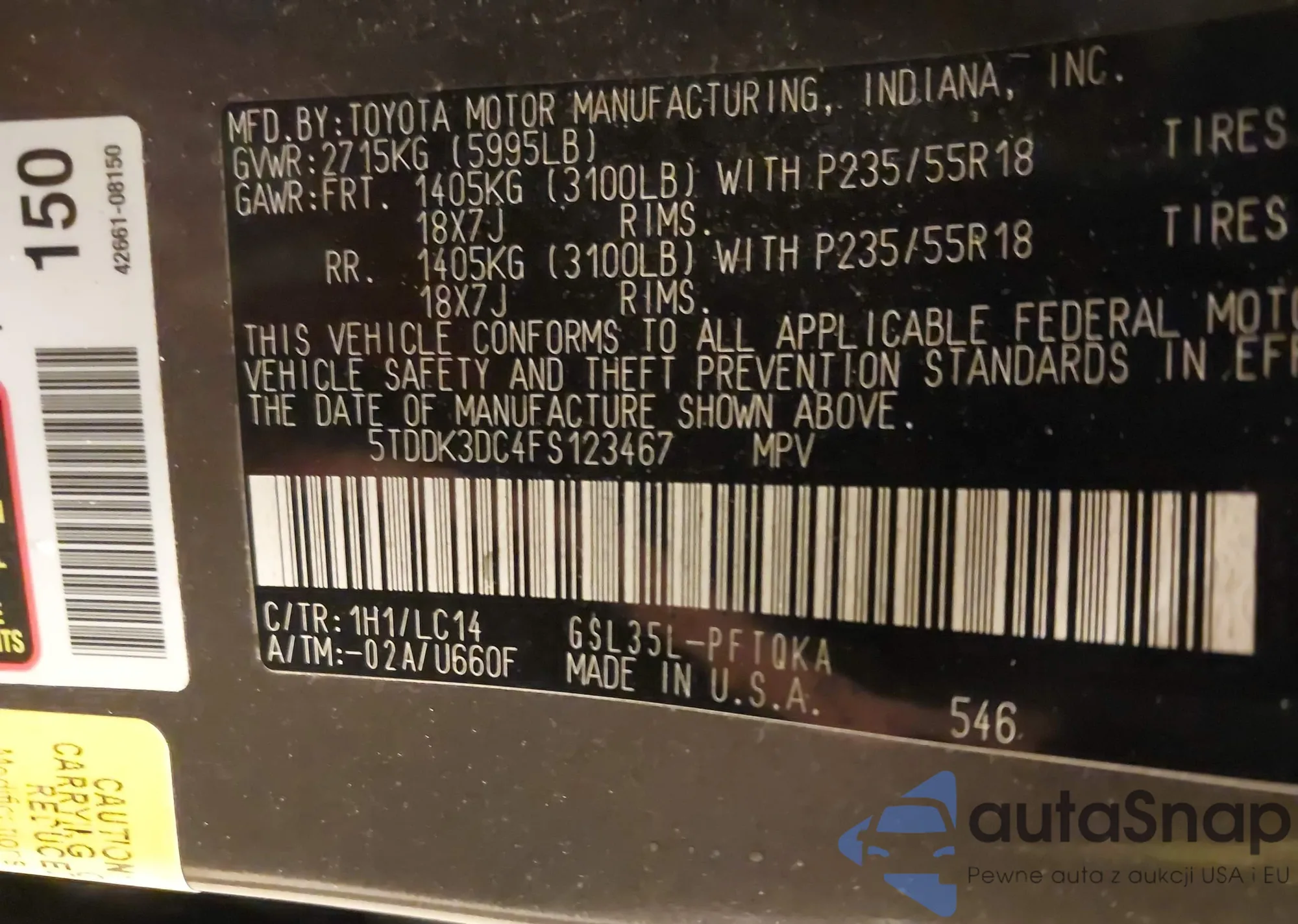 LOT: 41977448 VIN: 5TDDK3DC4FS123467