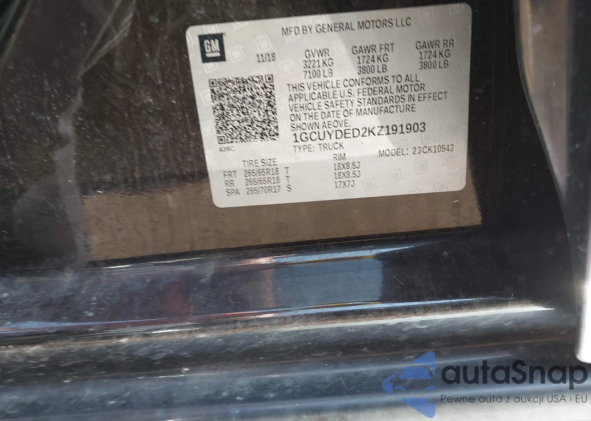 LOT: 42635820 VIN: 1GCUYDED2KZ191903