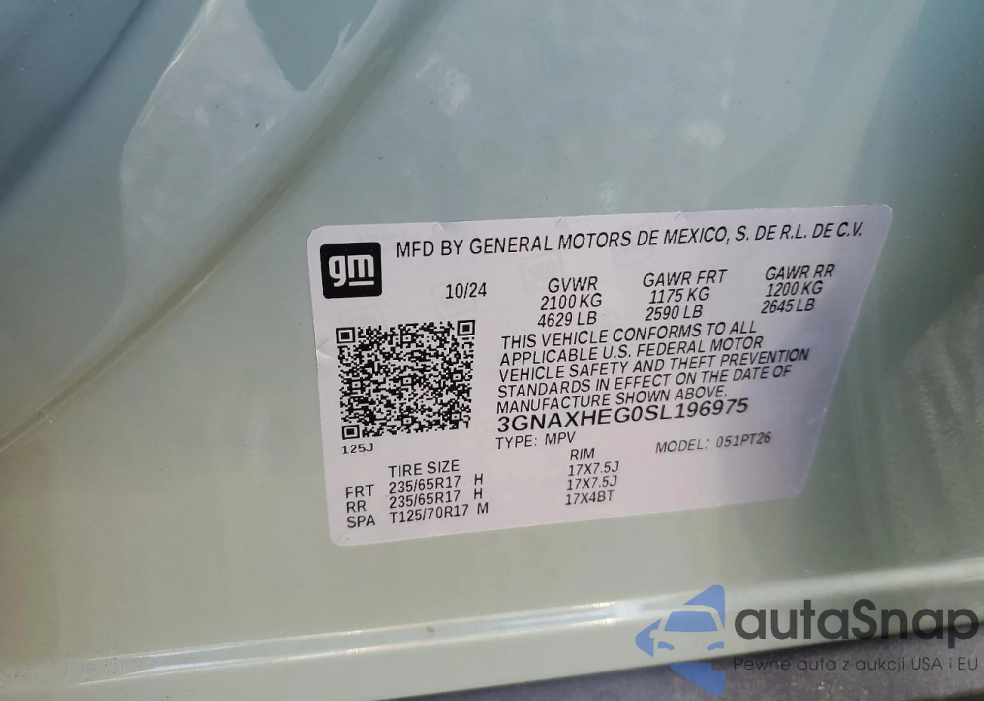 LOT: 63660205 VIN: 1NXBU4EE2AZ352883