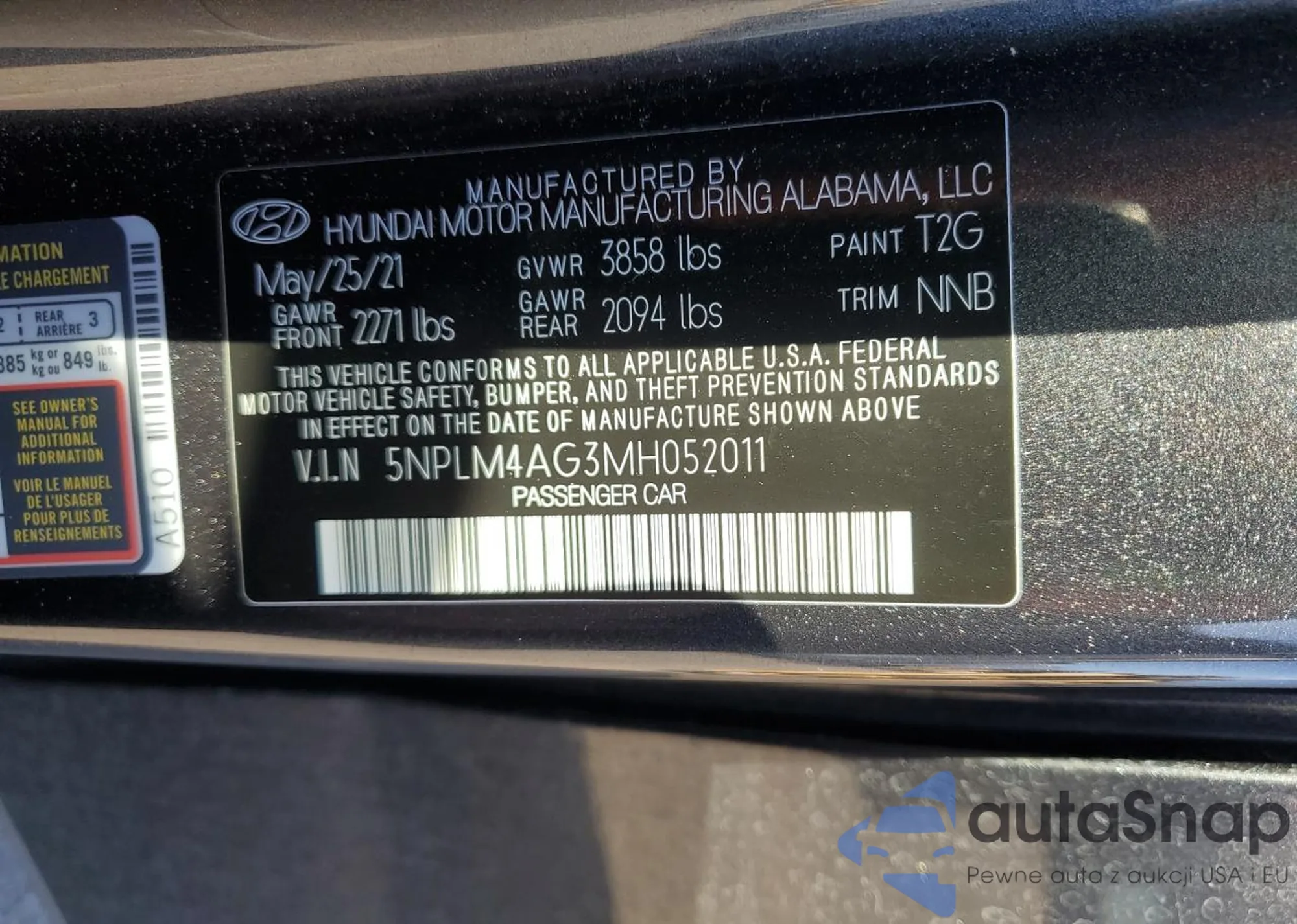 • VIN 5NPEB4AC7BH069841