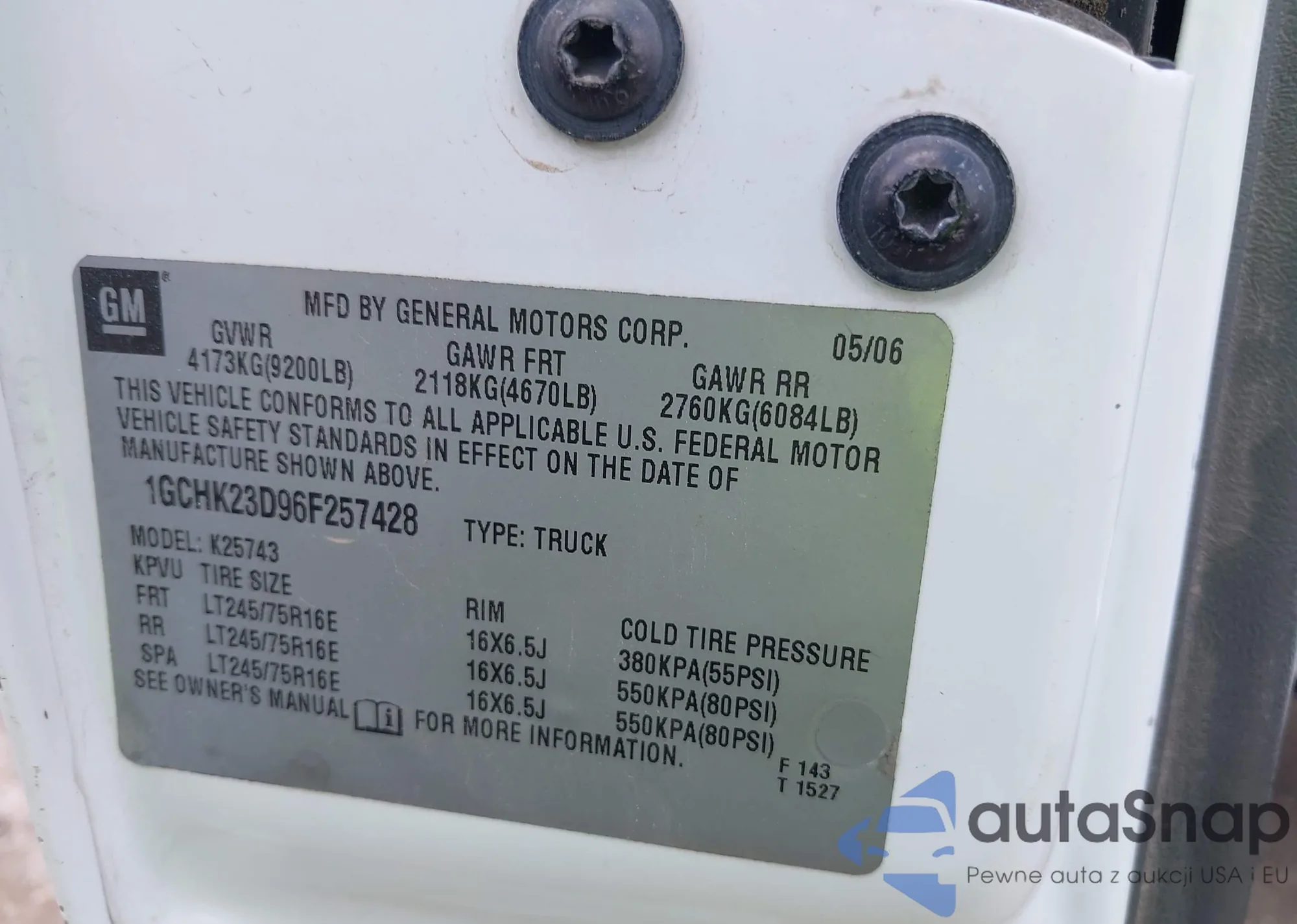 LOT: 42182345 VIN: 1GCHK23D96F257428