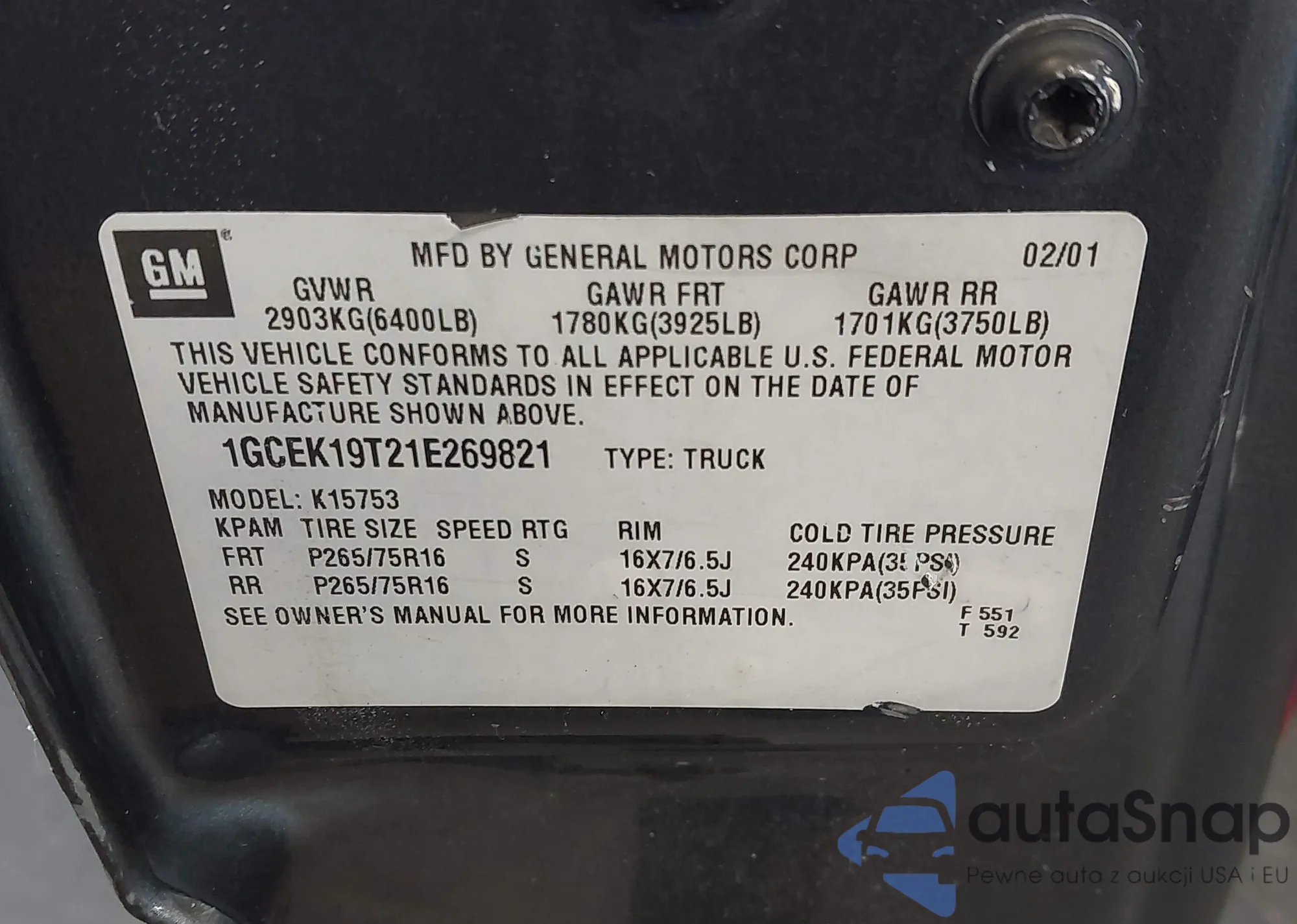 • VIN 1GCEK19T21E269821