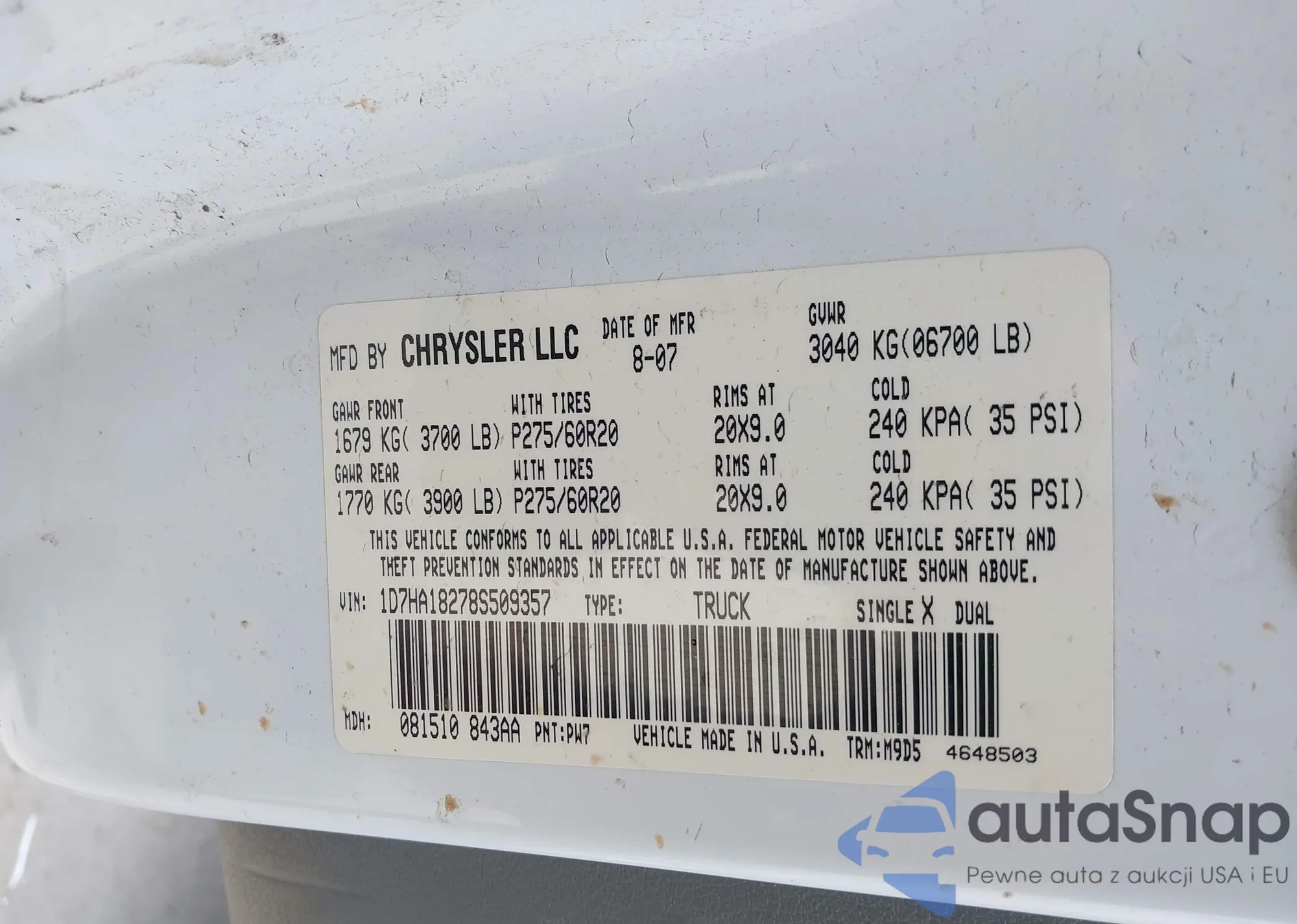 • VIN 1FTPW12584KC76710