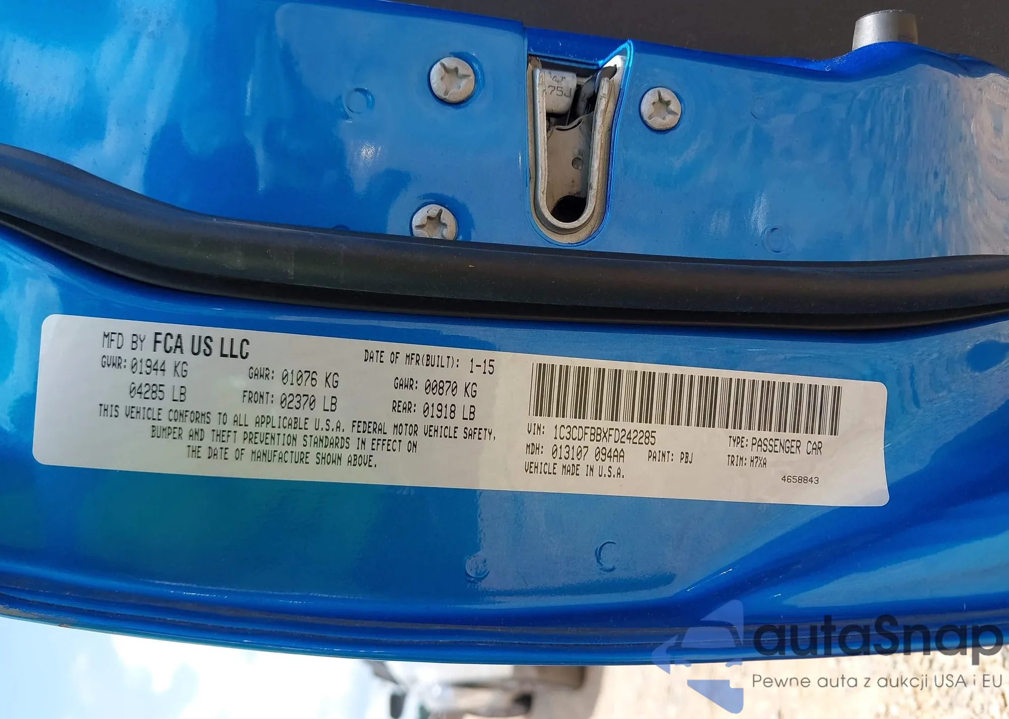 • VIN 1C3CDFBBXFD242285