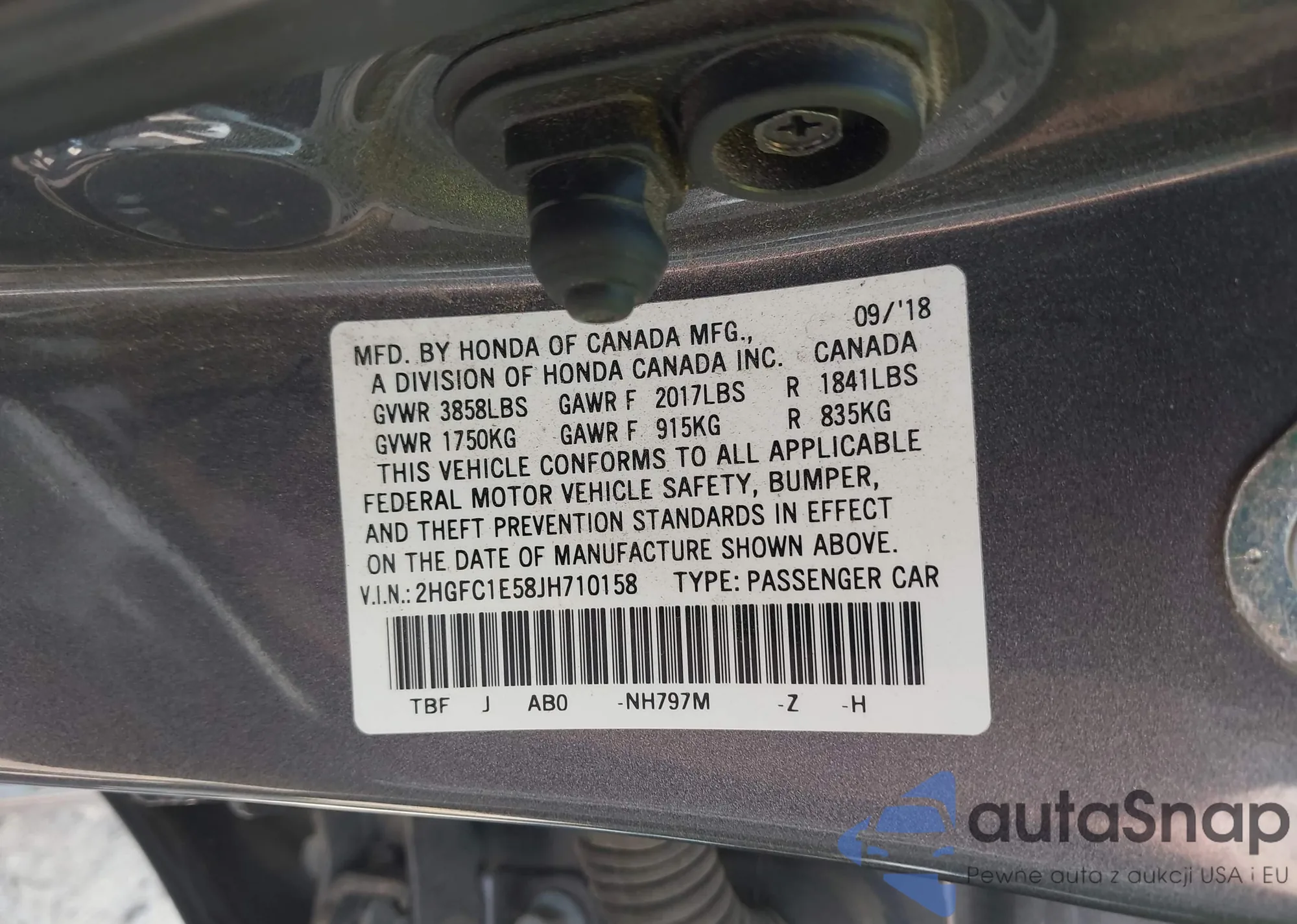 • VIN 2HGFC1E58JH710158