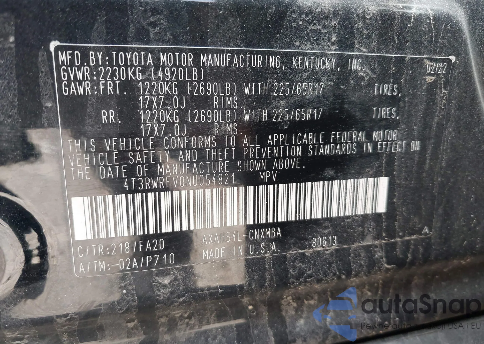 • VIN 4T3RWRFV0NU054821