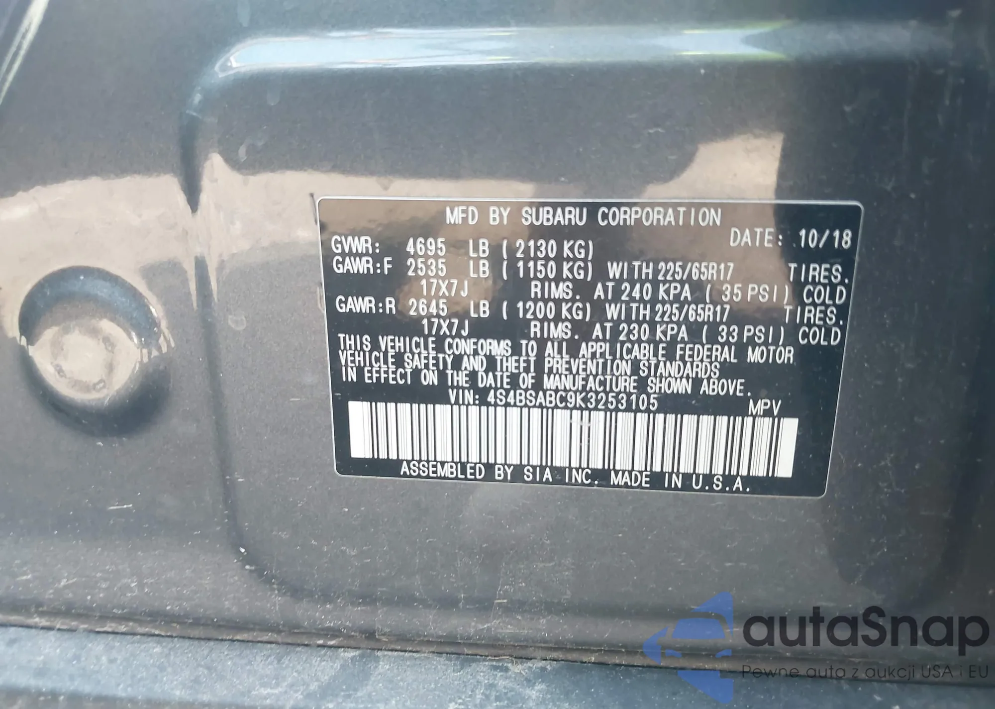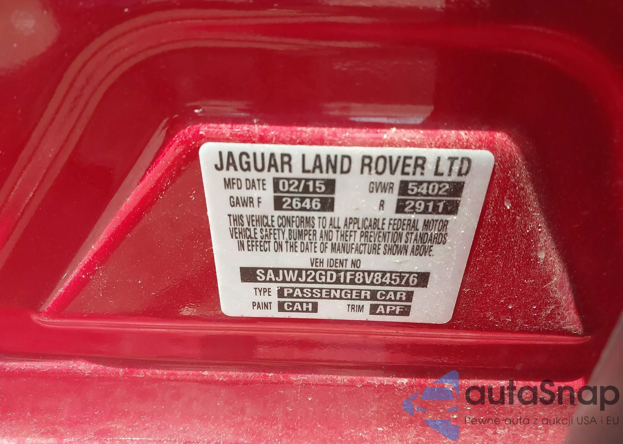 LOT: 42559246 VIN: SAJWJ2GD1F8V84576