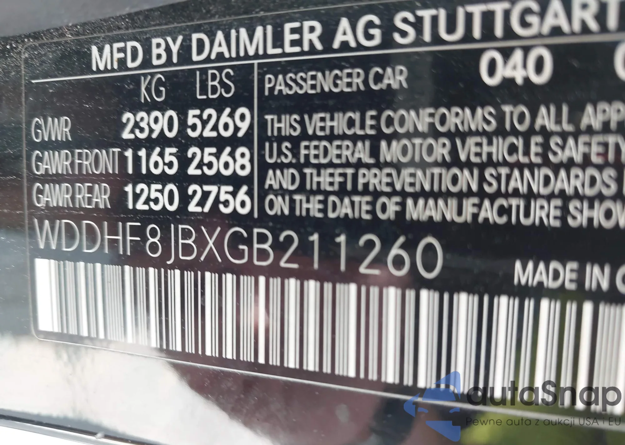 • VIN WDDHF8JBXGB211260