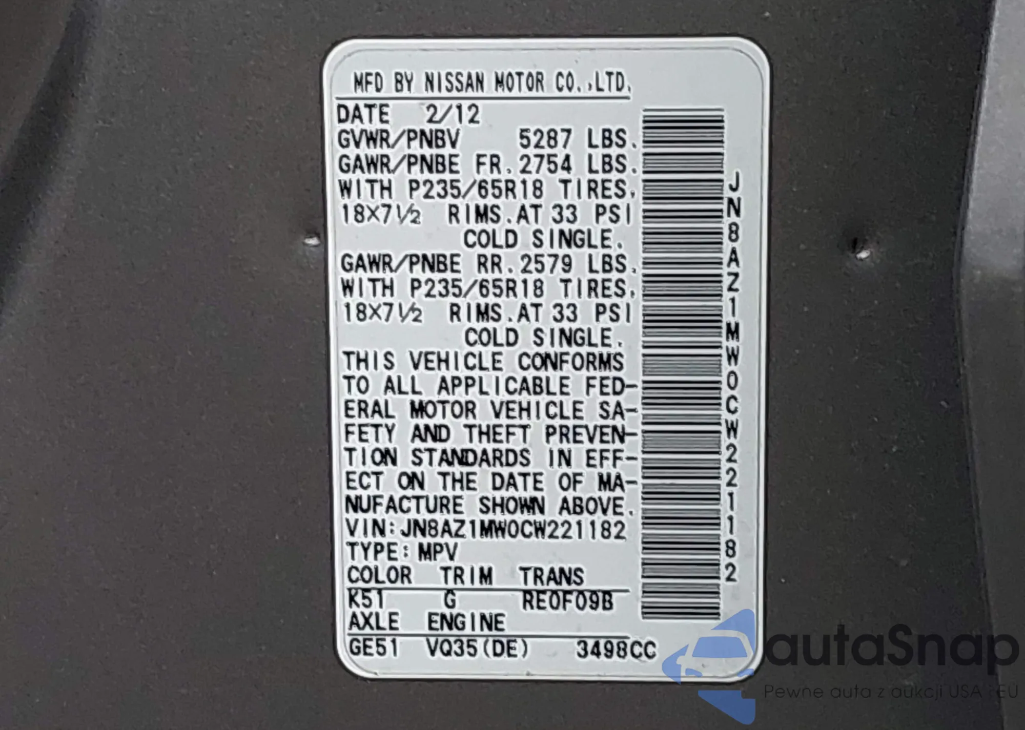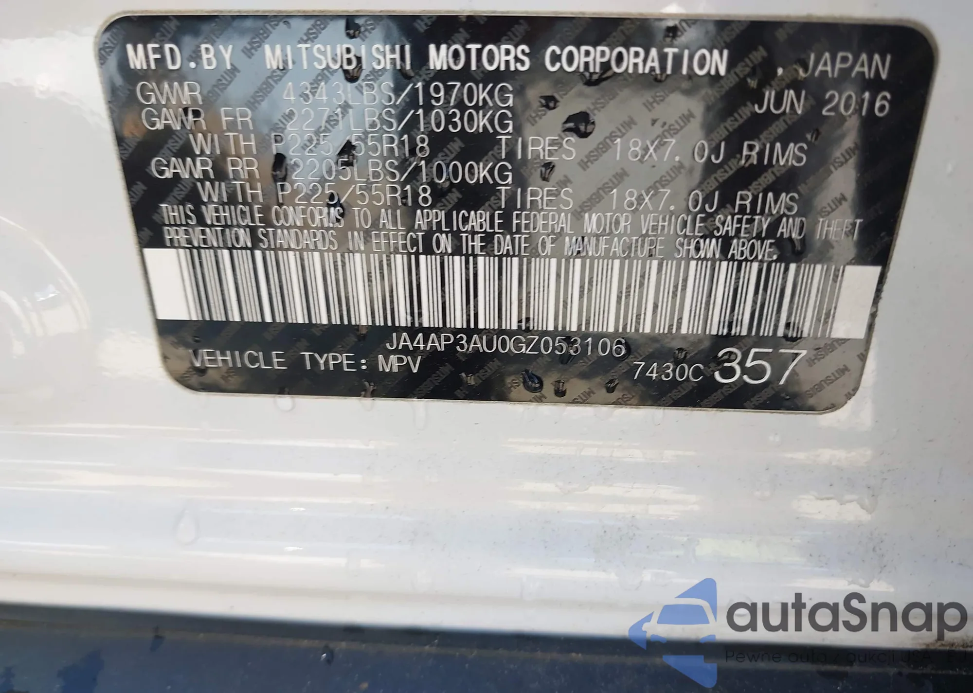 LOT: 42368350 VIN: JA4AP3AU0GZ053106