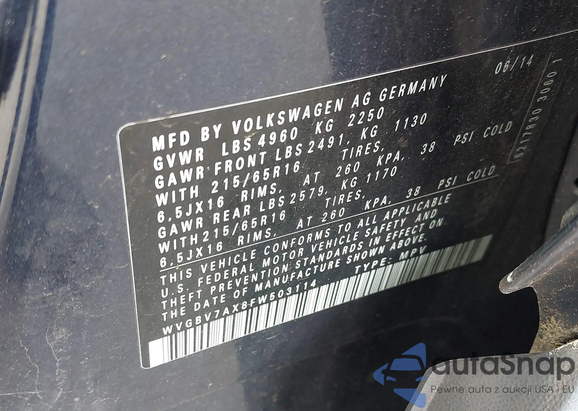 • VIN WVGBV7AX8FW503114
