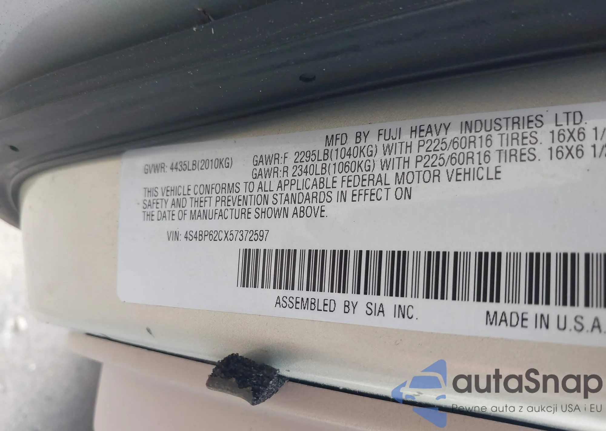 • VIN 4S4BP62CX57372597